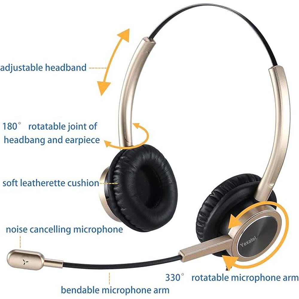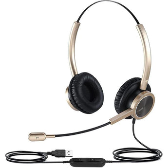 USB Computer Headset with Microphone | Noise Cancelling Mic Mute & Volume Control | for Microsoft Teams/3CX Office & Online Meetings (Y809DGUC, Gold)