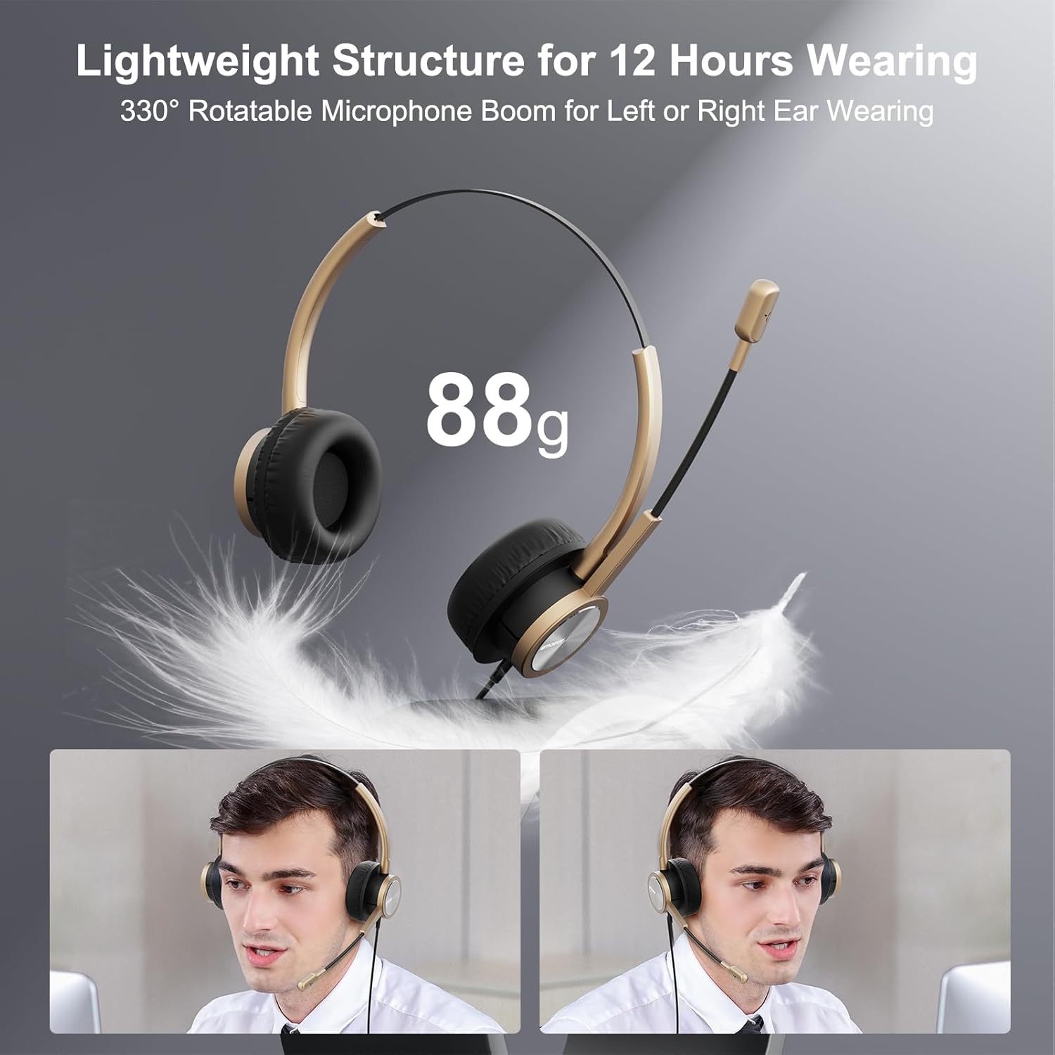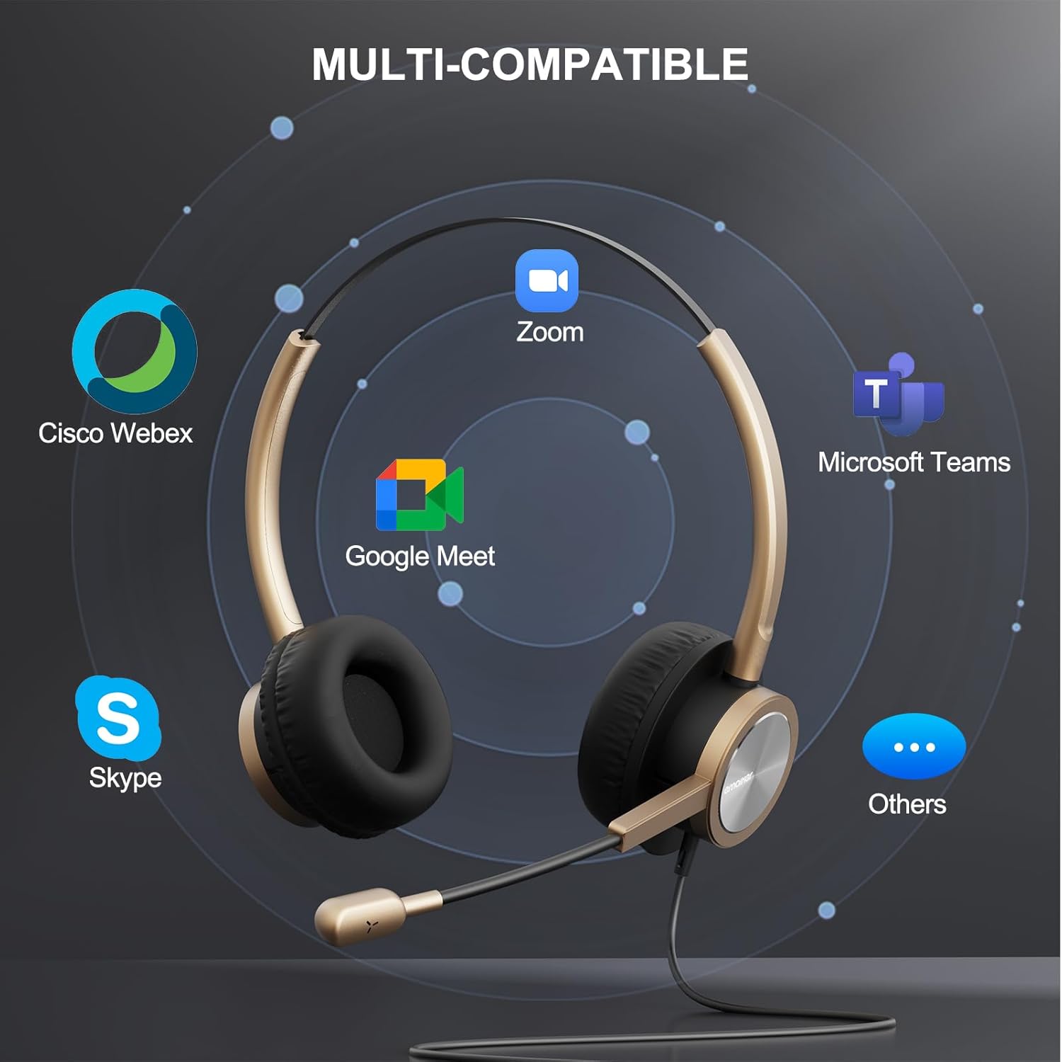 - Wide compatibility usb headphones: This gold pc headphone with usb-a jack and noise cancelling mic is professionally designed for chats, calls and audio listening. compatible with windows 11//7/8/10/xp,mac os x,ios, android, tablets and computers. Widely applied to unified communication softphones from microsoft, avaya, cisco webex, zoom, google meet and others.good choice for teams,skype/lync,dragon voice dictation,speach recognition, rosetta stone program, online courses,voip platform,conference,webinar and more