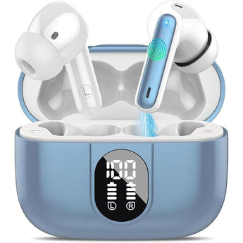 - 40 Hours Playtime and LED Display These bluetooth earbuds provide up to 6-8 hours of high-quality sound output on a single 1.5-hour charge, and the included charging case provides an additional 4 charges, giving a total playtime of 40 hours. They feature a smart LED digital display, allowing you to easily monitor the battery consumption of both the wireless ear buds and the charging case so you can know when to charge them. Youll never have to worry about battery life even on long trips.