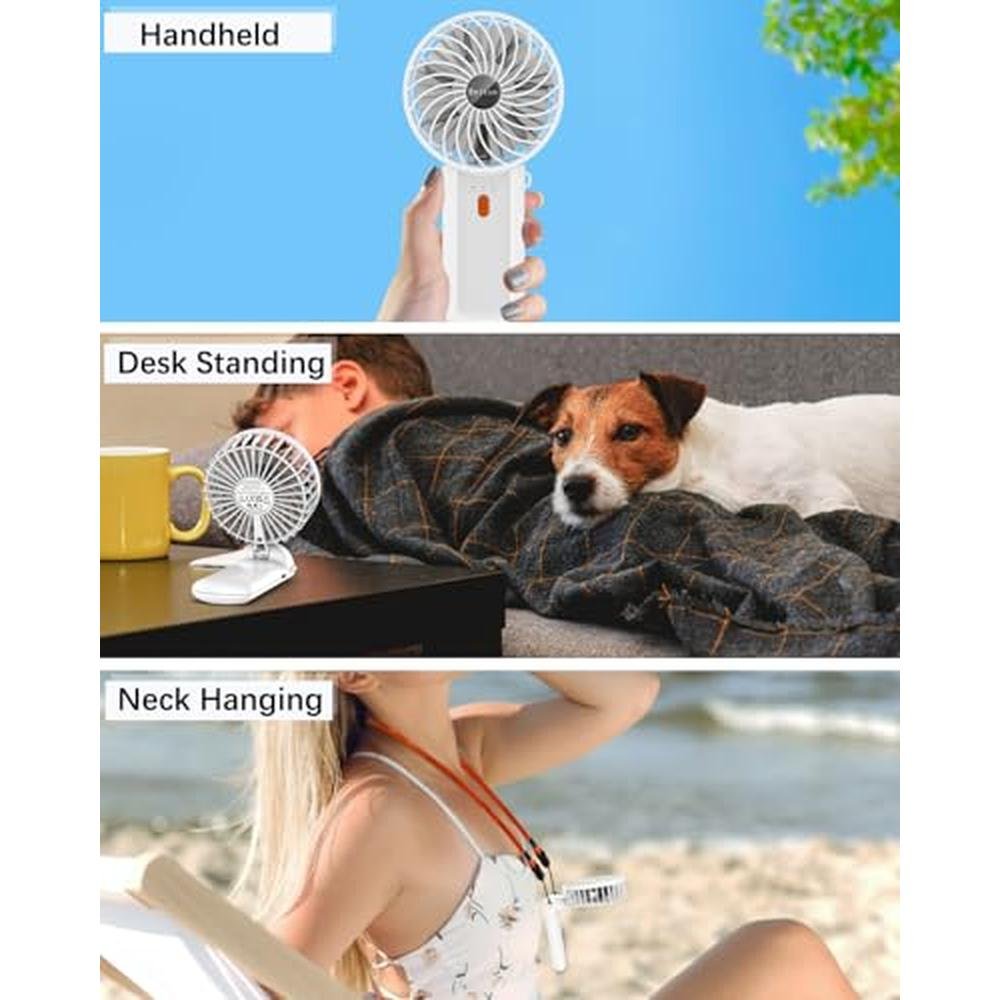 Special Feature | Rechargeable Battery, 6-15H Wroking Time, 3-in-1(Handheld Fan, Desk Fan, Neck Fan), 11 Wind Speed, Ultra Quiet, Foldable |