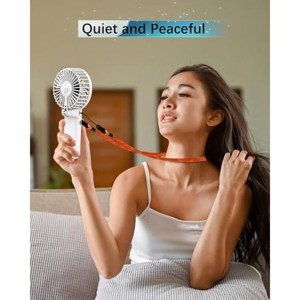 - Ultra-Quiet Operation Mini handheld fan benefits from the use of silent motor technology, Reduces noise while generating maximum airflow. At the same wind speed, the motor produces a noise level 40 lower than competitors, Super quiet, noise is 30db on the highest wind speed, won t disturb you when work or sleep