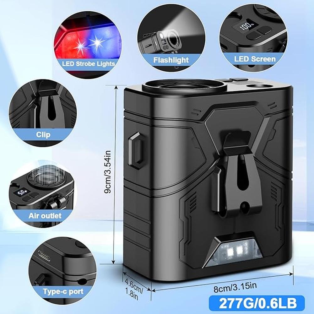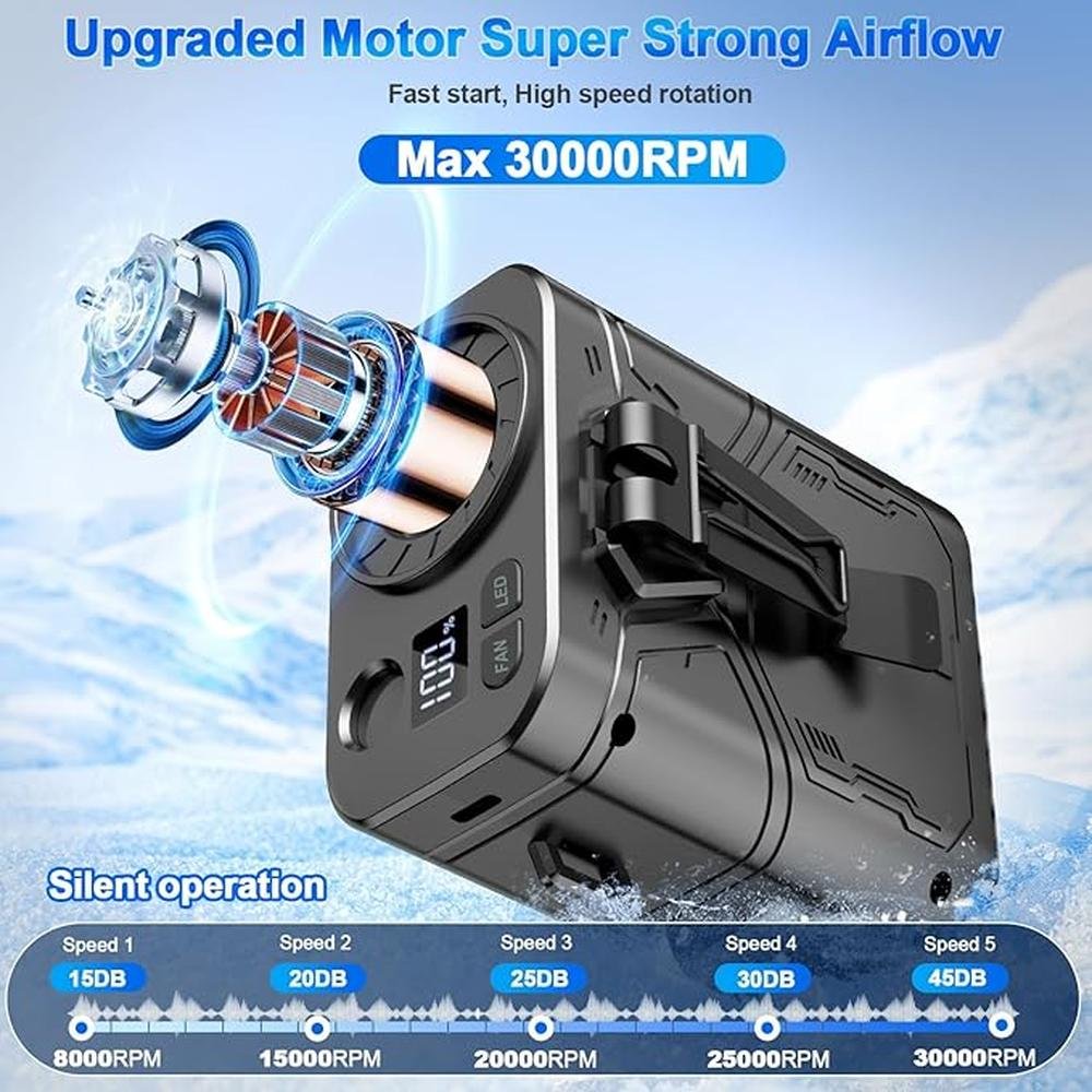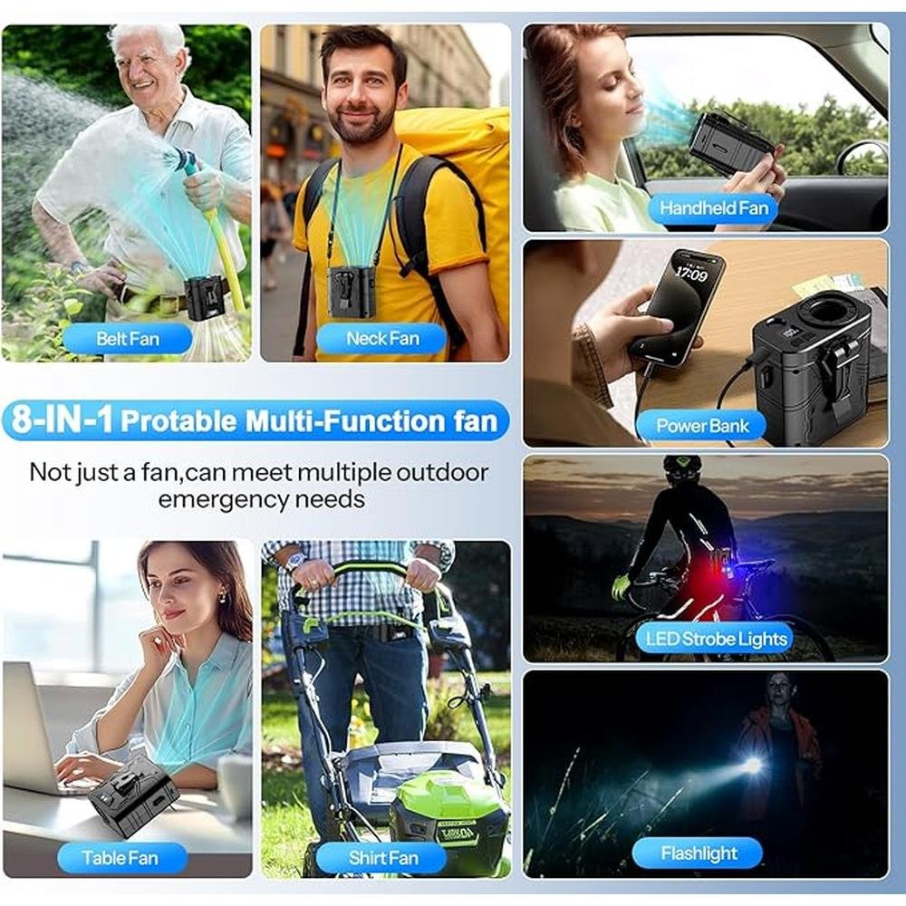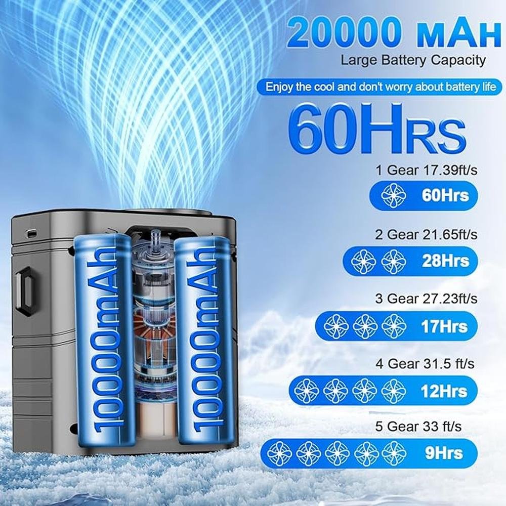Portable Fan 20000mAh | Rechargeable Waist Fan with 5 Speeds and LED Light | Personal Cooling Device for Outdoor and Camping
