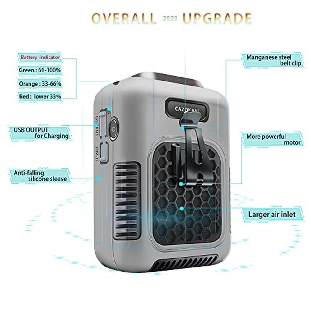 - Full upgraded and durable The 2023 upgraded waist clip fan belongs to our 3rd generation of fans, which has been comprehensively upgraded to address past issues. It features a stronger motor, added protective silicone sleeves, emergency charging for mobile phones, and an upgraded manganese steel clip. The performance has been upgraded while also becoming more sturdy and durable