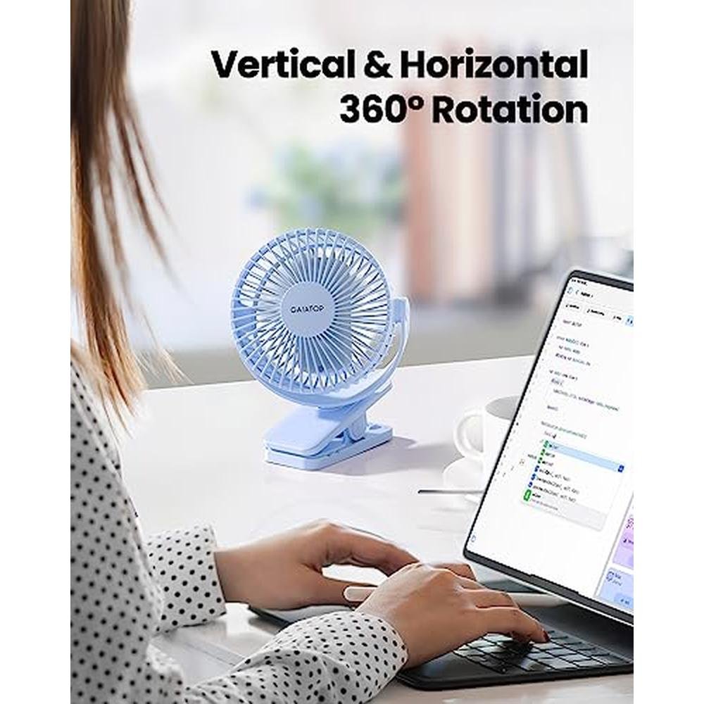 Gaiatop Portable Clip on Fan Battery Operated, Small Powerful 3 Speed Quiet 360 Rotate, USB Rechargeable Mini Personal Cooling Fan for Desk Table Home Office Stroller Camping Women Gifts Light Blue