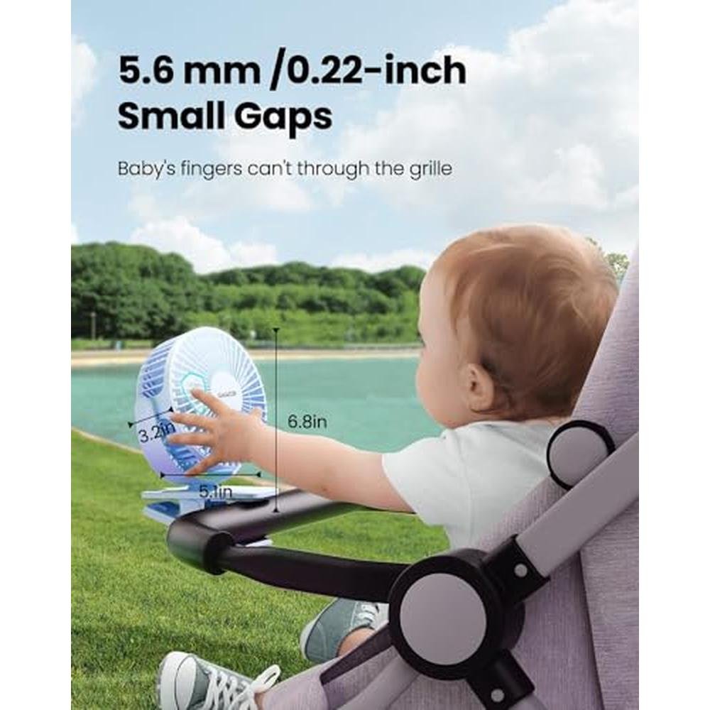 - Also Safe for Baby The mini clip fan only has 5.5mm gaps, so it will protect the infant s little fingers from entering While keeping toddlers safe, still works quietly and provides powerful wind