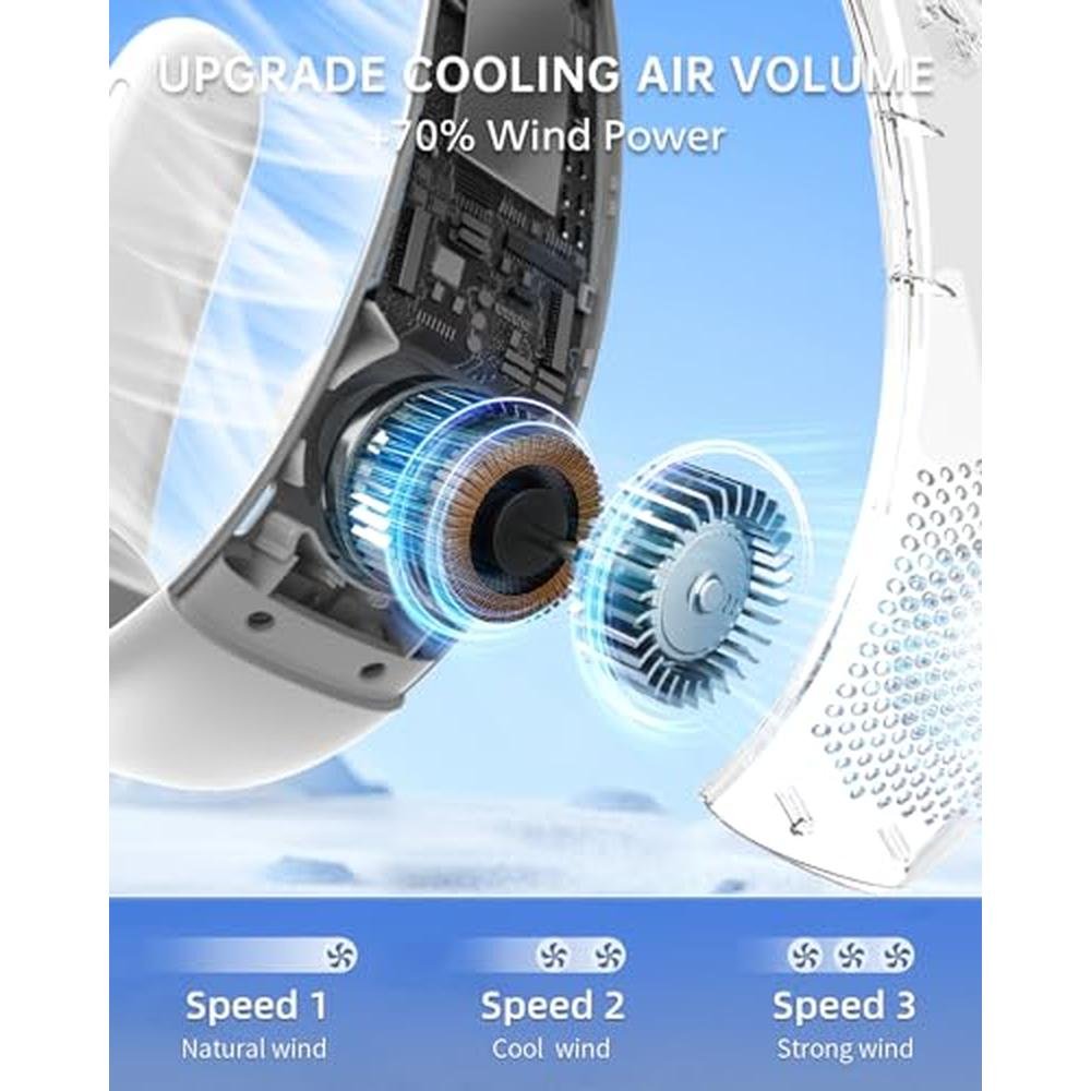 - Thin No Feeling -This rechargeable bladeless neck fan combines lightweight structural principles, weighing just 200g (0.44lb), ensuring effortless wearability and maximum portability. With its dual circular stand design, it effectively isolates heat, providing seamless and burden-free wearing.