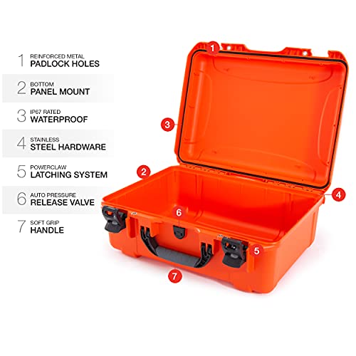 • The Nanuk 940 features a waterproof design, making it perfect for use in harsh environments, with a high-visibility orange color for added safety