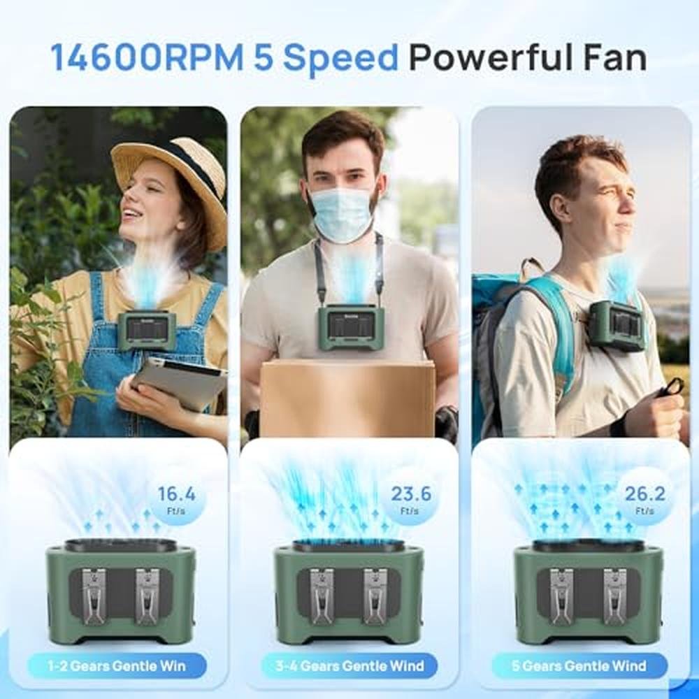 • 5-Speed Turbo Wind Ultra-Long Runtime Featuring an advanced brushless motor, experience powerful airflow of up to 14,600RPM. Enjoy up to 35 hours of gentle cooling (powered by built-in 14500mAh rechargeable battery). Ideal for intense workouts, construction sites or lazy afternoons.