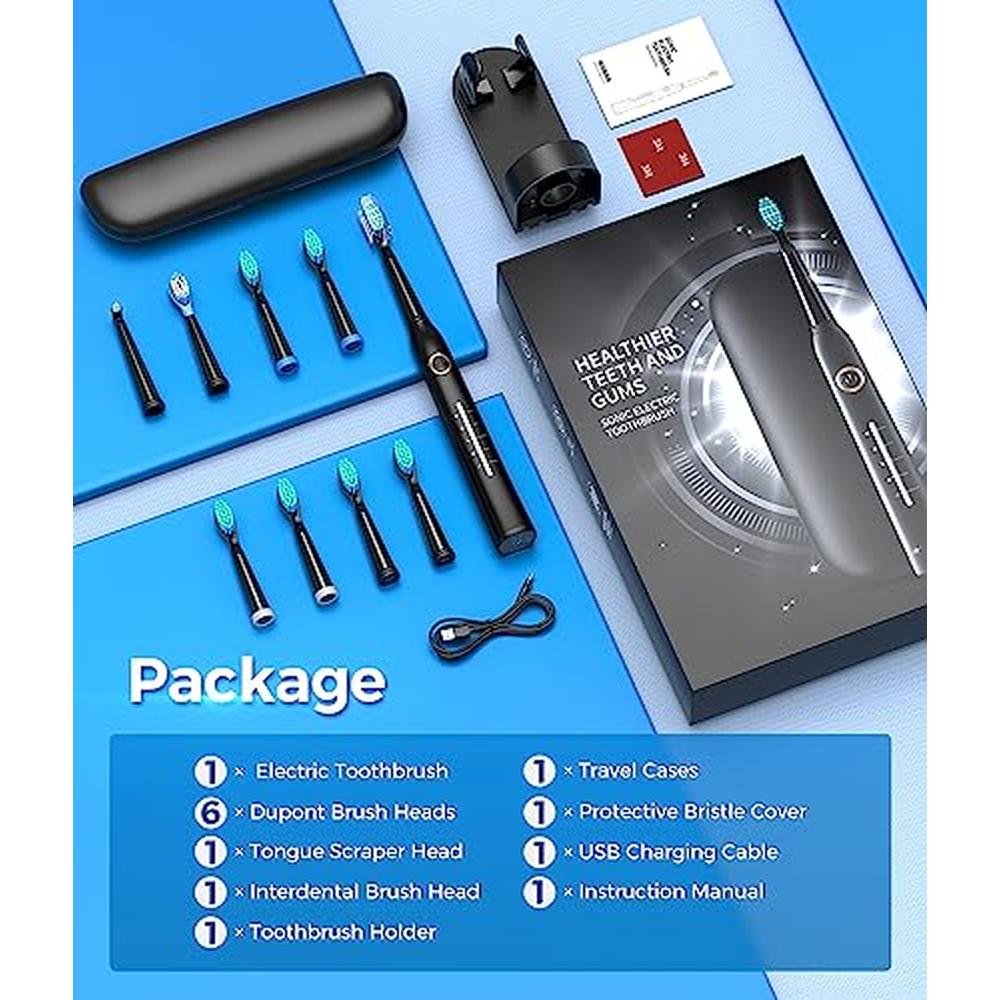 Sonic Electric Toothbrush for Adults, Power Electric Toothbrush with 8 Brush Heads, Travel Case, 40000 VPM Deep Clean 5 Modes, Rechargeable Toothbrushes Fast Charge 4 Hours Last 30 Days, Black
