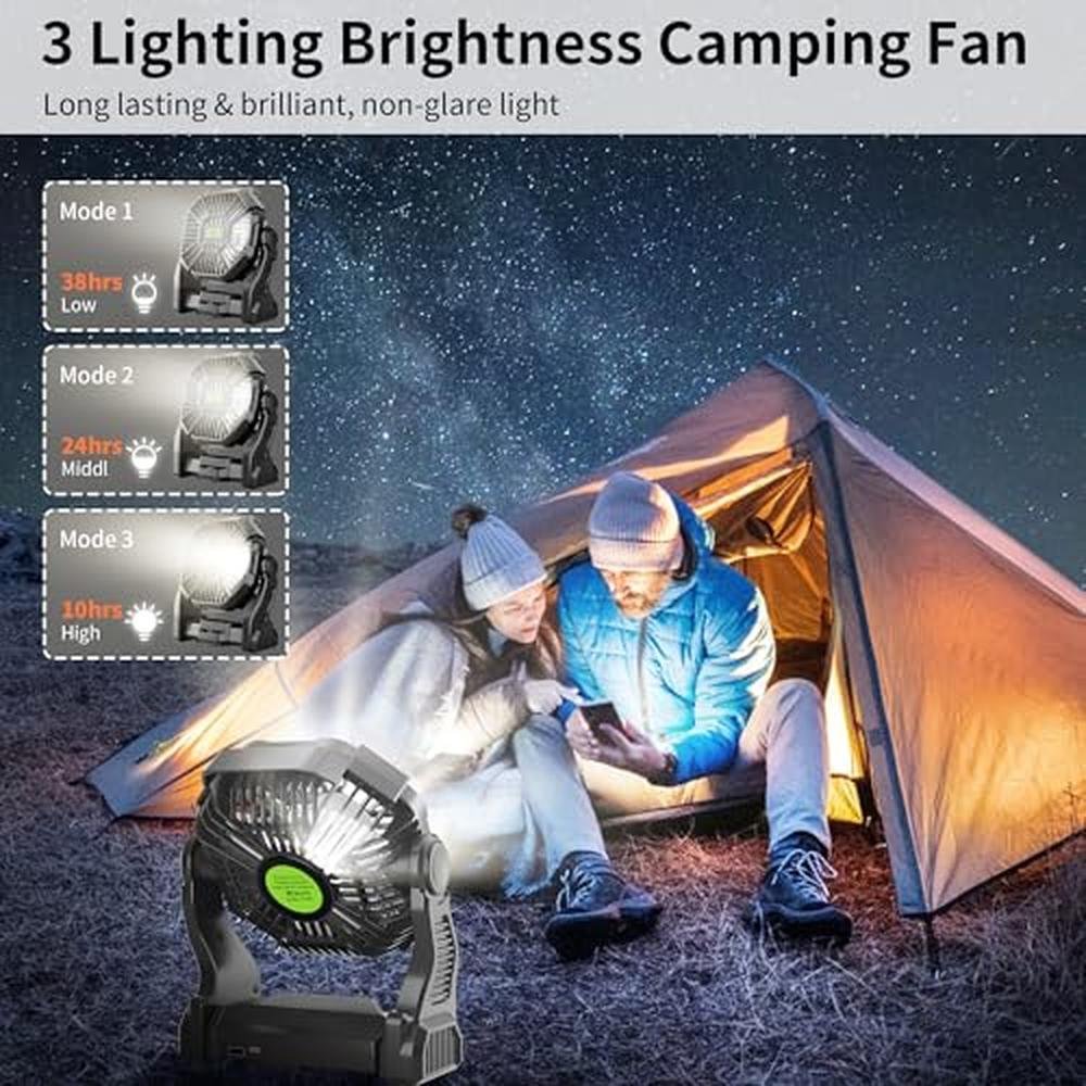 - More Brightness LED Rechargeable Camping Fan with Light- TDLOL portable camping fan has 3 level Brightness modes, the light is soft and not dazzling. The lowest brightness is suitable for night reading, protecting eyesight The highest brightness can illuminate the entire space, enhance the night experience, and provide an ideal light source for outdoor night activities such as barbecues, picnics, hiking, and fishing.