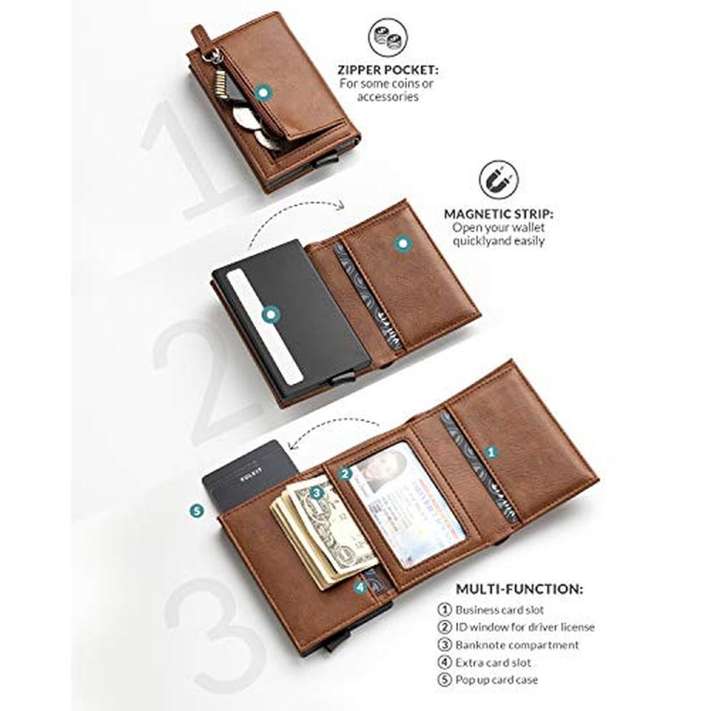 - Simple Toggle Wallets - Slide the lever to pop out the cards smoothly and orderly, enabling you to easily access any of the cards.