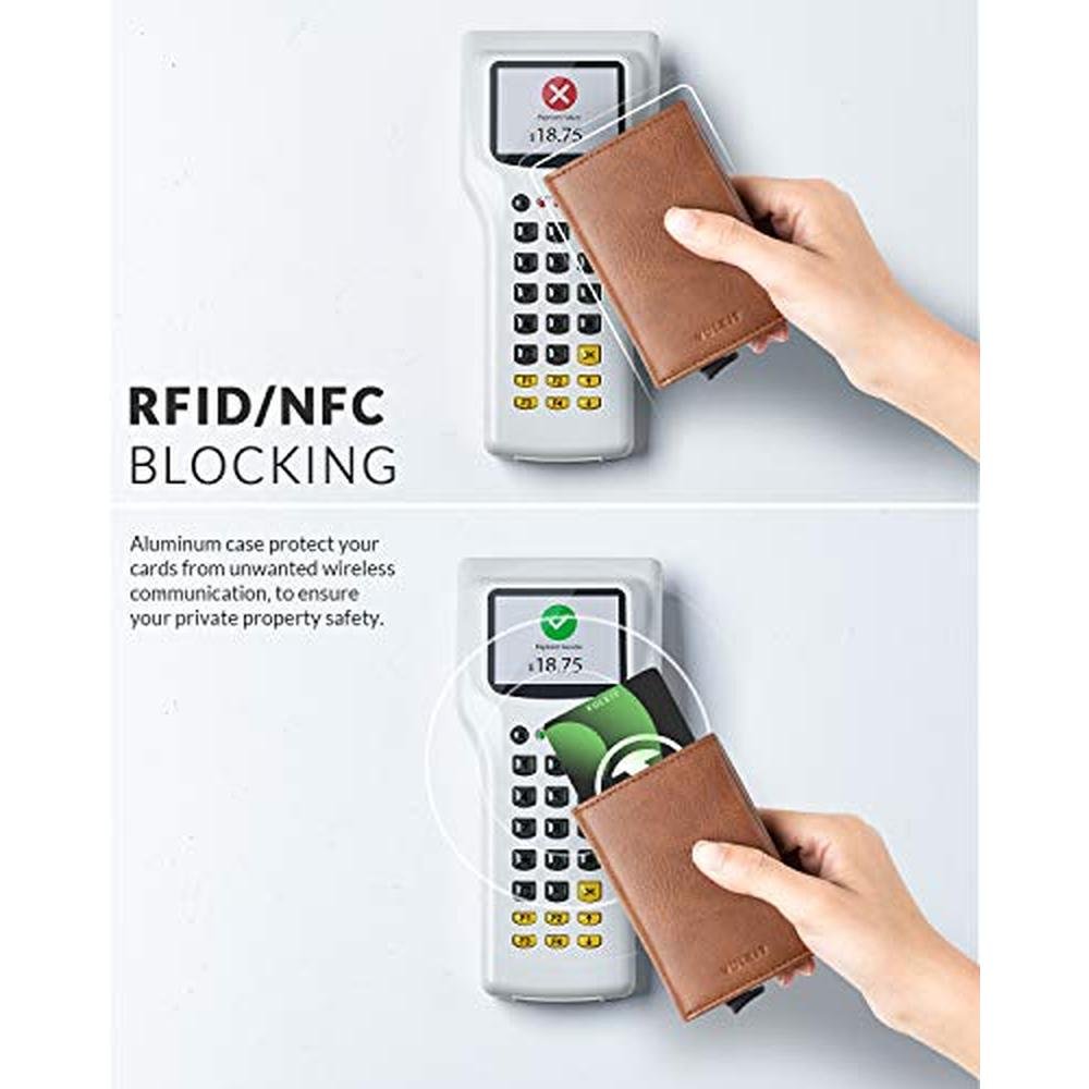 - RFID/NFC Blocking Card wallet- Integrated aluminum case protects your cards from unwanted wireless communication, keeps your private property safety.