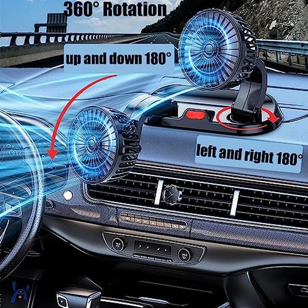 ZHTMFYZ Dual Head Fans for Car,Portable Vehicle Cooling Fan with 2 Speeds,360 Rotatable Adjustable Dashboard Air Circulator Fan for Car for SUV, RV, Truck, Sedan, Cruise,Cigarette Lighter Powered