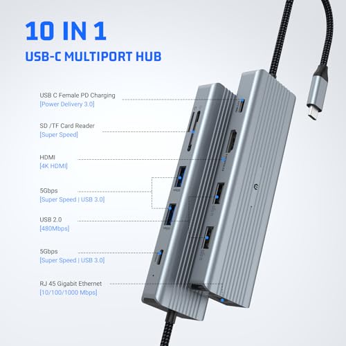 Docking Station | 10-in-1 USB C Hub with 4K HDMI, LAN, 100W PD, USB C 3.0 | Premium USB C Adapter for Dual Monitors