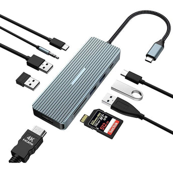 10 in 1 USB C Hub, Oditton Adapter Hub with 4K HDMI, 2 x USB 3.0, USB-C 3.0 Data Transfer, 2 x USB 2.0, 100W Charging, SD/TF, Audio Jack for Laptop, iPad