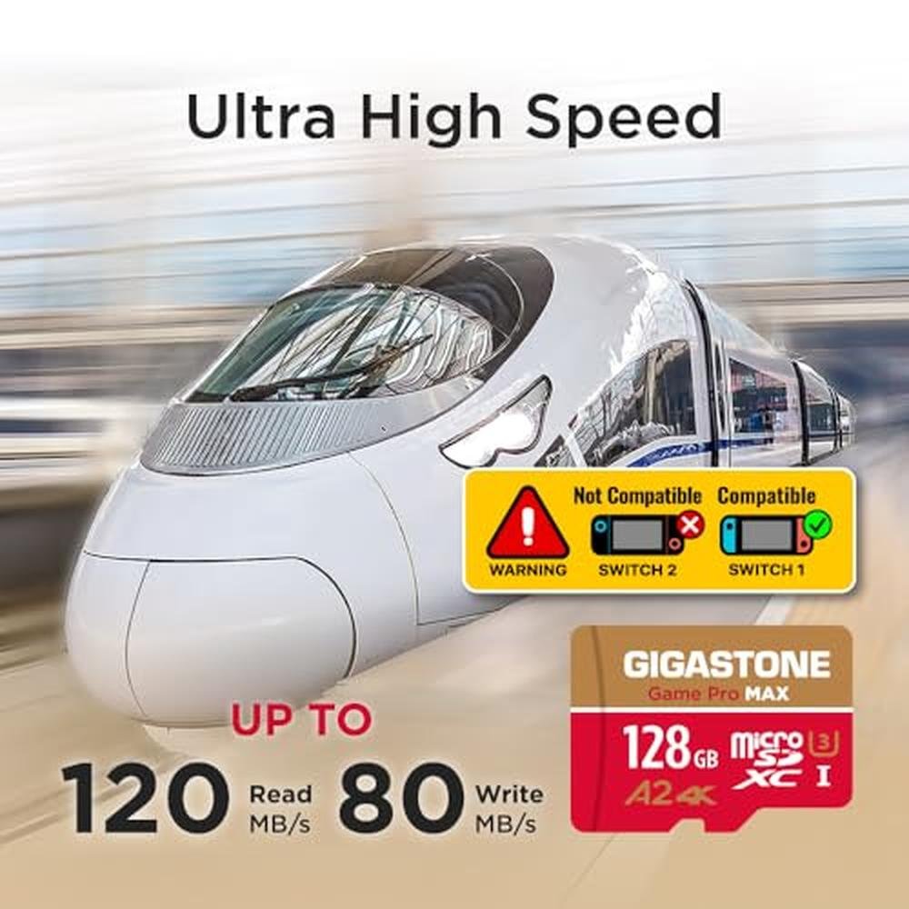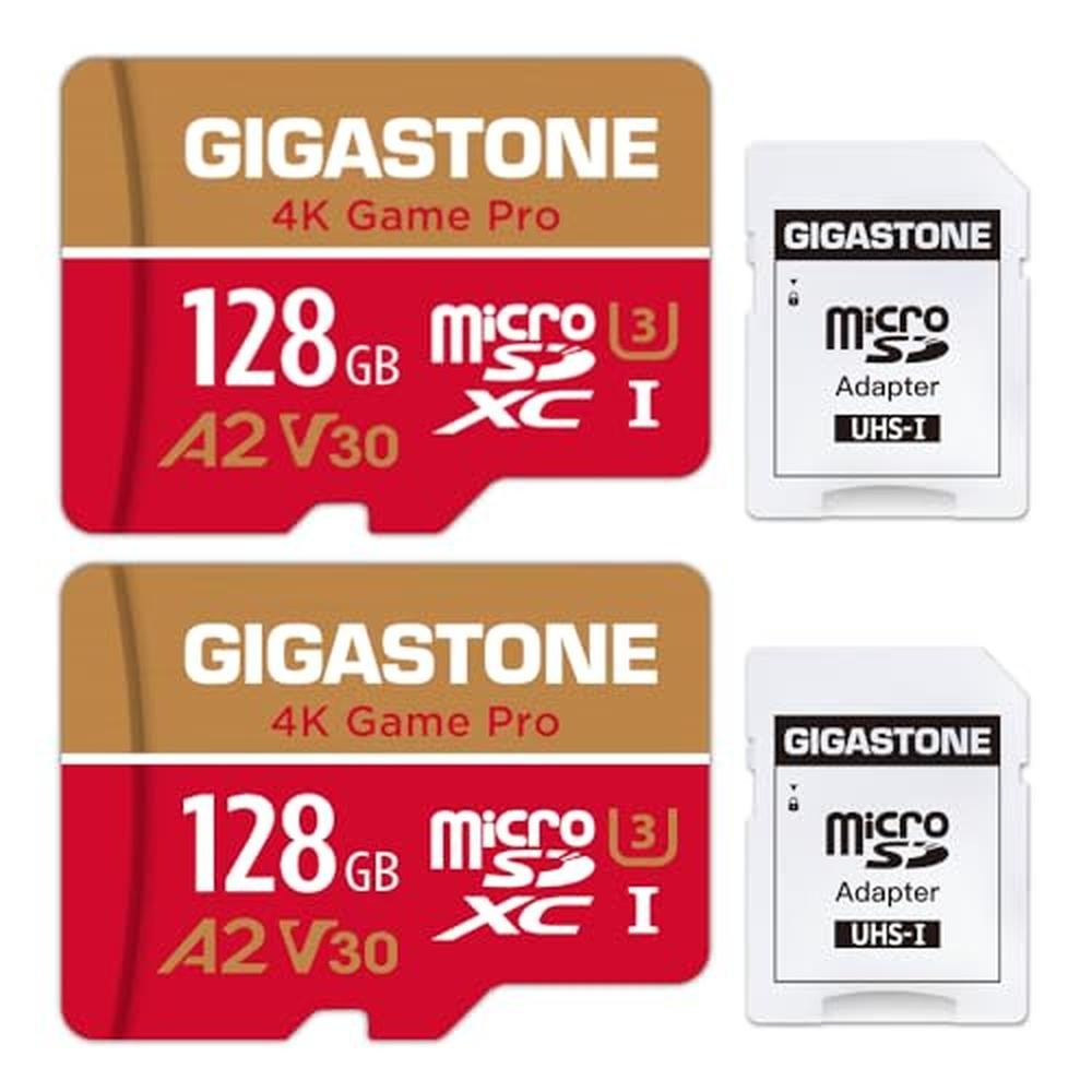 [5-Yrs Free Data Recovery] GIGASTONE 128GB Micro SD Card 2-Pack, 4K Game Pro MAX, A2 V30 MicroSDXC for Nintendo-Switch 1, Steam Deck, Gaming Console, Speed Up to 120MB/s, UHS-I U3 C10 with Adapter