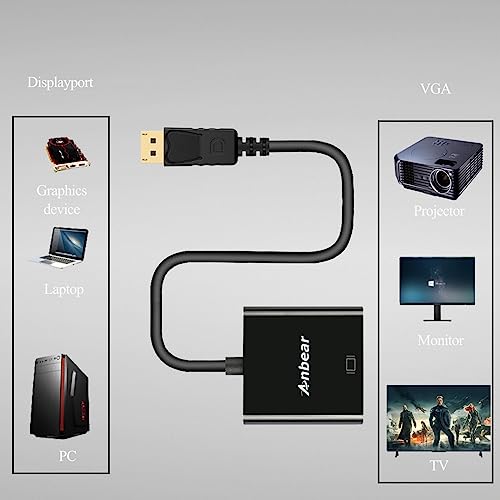 - The Anbear DisplayPort to VGA Adapter is designed to work with DisplayPort-enabled desktops and laptops, making it an ideal solution for both personal and professional use