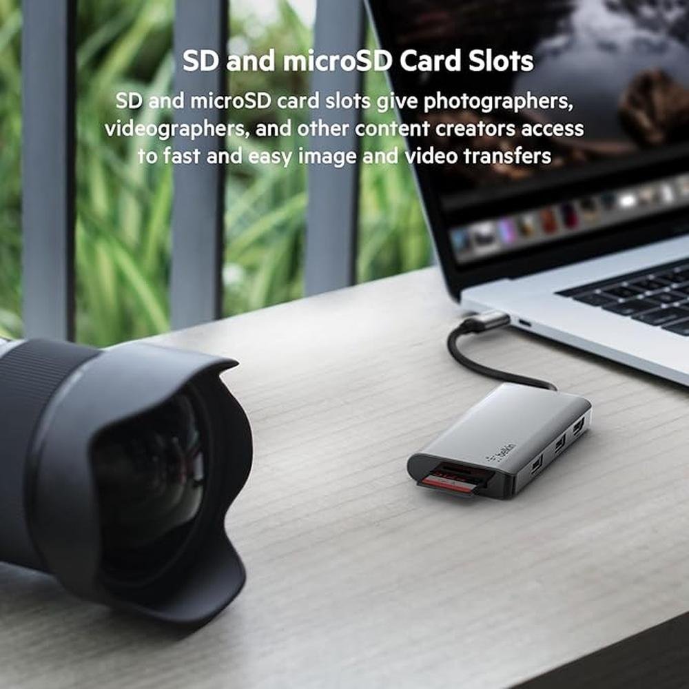 - The Belkin 5-in-1 Hub features a 4K HDMI port for high-resolution video output, 2 USB-A 3.1 ports for fast data transfer speeds of up to 5Gbps, and SD and MicroSD 3.0 card readers for easy file transfers and expansions