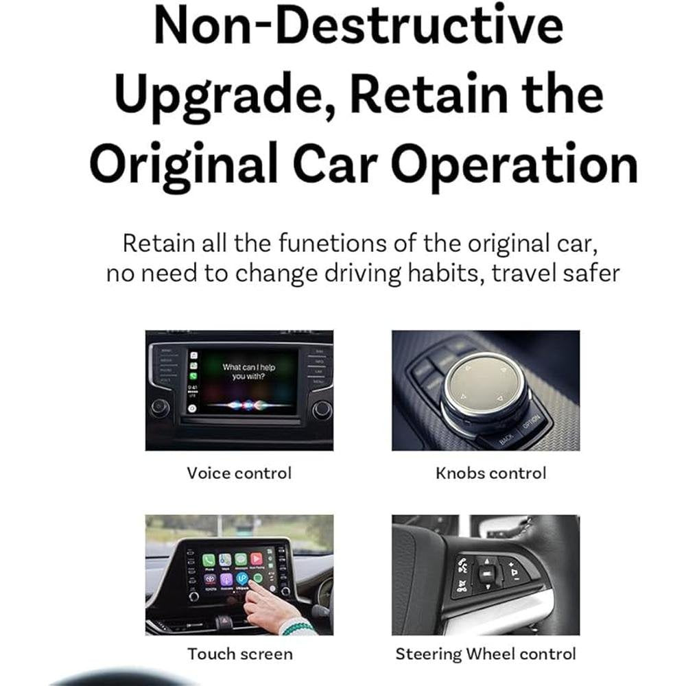- EASY TO USE The plug-and-play design made installation a breeze, no need for any extra drive, apps, or troublesome system upgrades. After the first setup, our adapter will automatically activate the CarPlay wireless connection every time the car starts. Enjoy setup it up once and for all. This carplay dongle also supports voice control, steering wheel, touch screen and knob operation. You can use SIRI to assist with driving, such as listening to music, navigating, reading text messages.