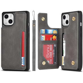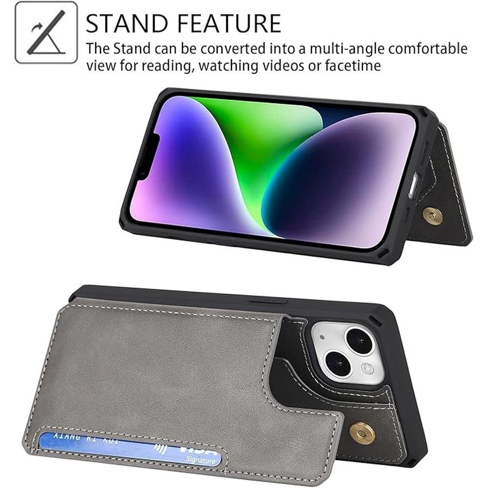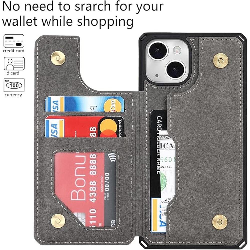 Cavor for iPhone 14 Plus Wallet Case with Card Holder,for iPhone 14 Plus Case Wallet for Women,Phone Cases for iPhone 14 Plus with Stand,Double Magnetic Clasp Shockproof Flip Cover for Men-Grey