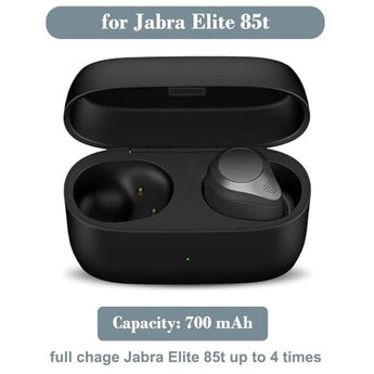 for Jaa Elite 85t Charging Case If you have lost or damaged your original charging case or wanna a backucharging case, the charging case will be a good choice. Compatibility Compatible with Jaa Elite 85t Specification Material ABS Interface Type-C Wireless Input 5V 0.5A Wired Input 5V 0.3A Battery Capacity 700mAh Package includes 1 x charging case for Elite 85t 1 x USB-C Cable 1 x Instruction Indicator Light Status - Battery Power Percentage Red light 0 30 Yellow light 30 60 Green light 60 100 Friendly Tips 1. Please charge the charging case in time when it flashes red light. 2. The charging case power level cannot sync to Sound app. 3. The charging case not compatible with Jaa Elite 75t, Elite 7 Pro Active, Elite 65t.