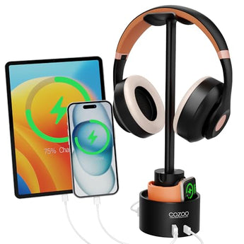 Experience the ultimate charging solution with the COZOO Headphone Stand, designed to keep your gaming setup organized and powered up. This innovative stand features 3 USB charging ports, allowing you to charge your devices simultaneously, making it an ideal option for mobile phones, gaming controllers, and other accessories. The built-in watch stand and wireless charging pad add extra convenience, making it a great option for smartwatches and wireless earbuds. Perfect for gamers, DJs, and music enthusiasts, this charging stand is a must-have accessory for anyone looking to elevate their gaming experience.
