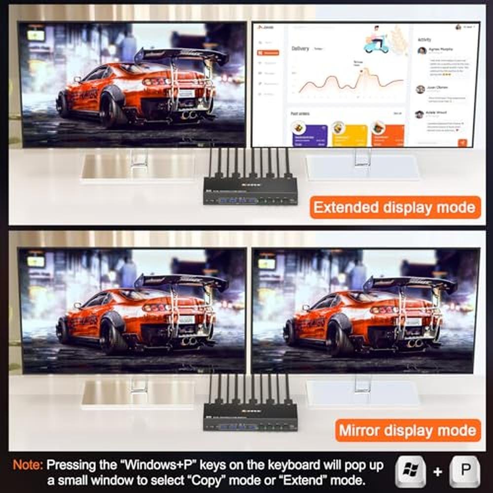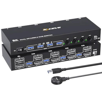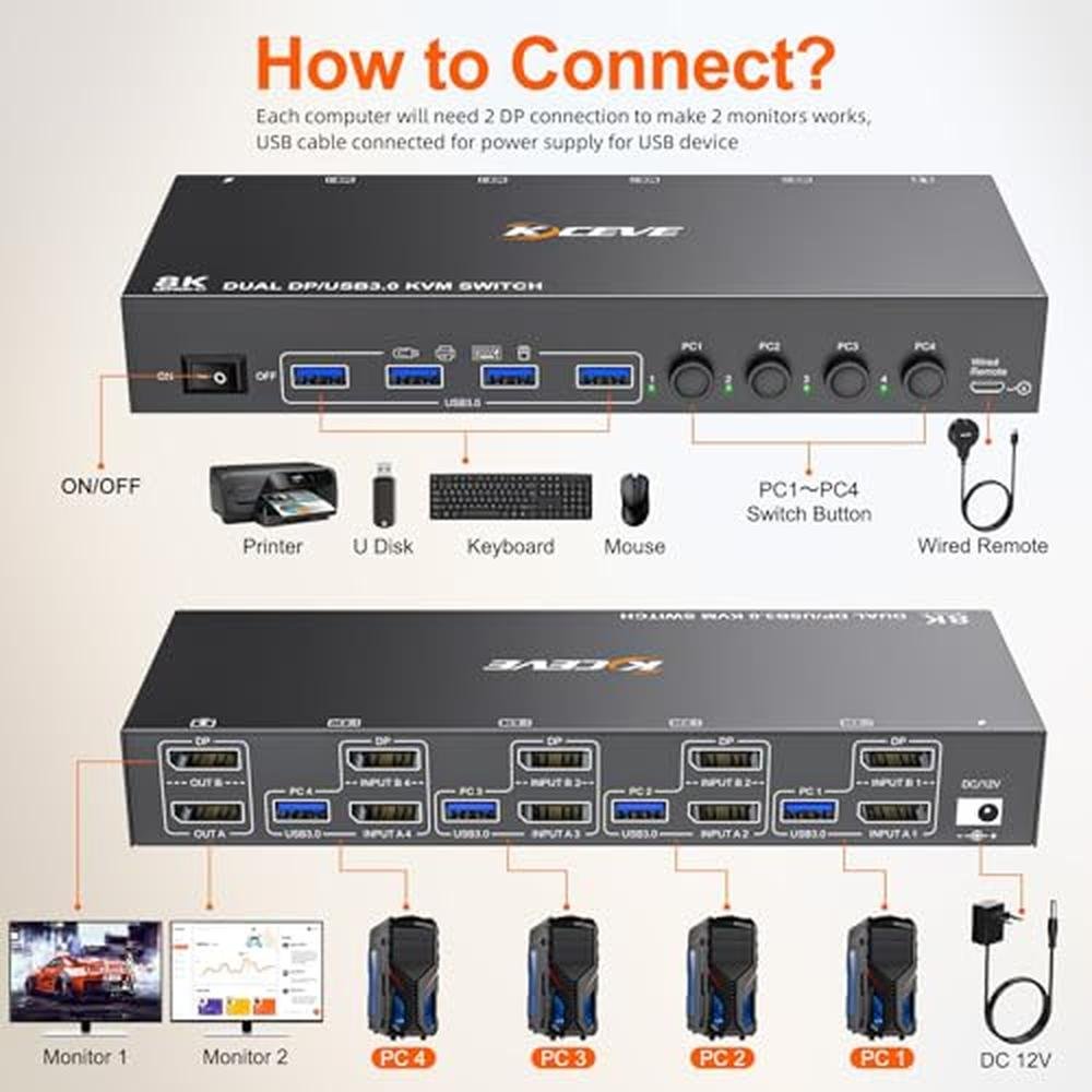 - DP KVM Switch Dual Monitor 4 Computers Support 4K@60Hz USB 3.0 KVM Switches Share Dual Monitors and 4 USB 3.0 Ports Support Extended/Copy Mode with DC 12V Adapter&Wired Controller
