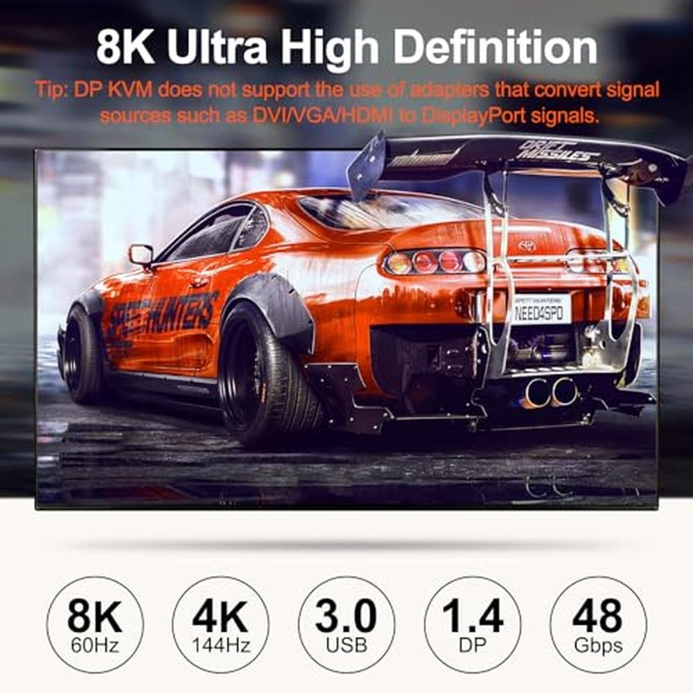 DP KVM Switch 2 Monitor 4 Computers Support 4K@60Hz USB 3.0 KVM Switches Share Dual Monitors and 4 USB 3.0 Ports Support Extended/Copy Mode with DC 12V Adapter&Wired Controller
