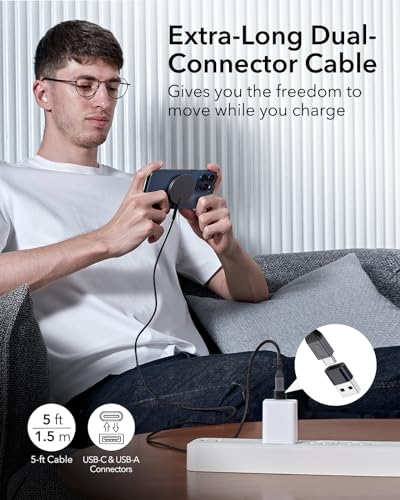 ESR for MagSafe Charger 15W Wireless Charger for iPhone 16 Pro Max/16 Pro/16/16 Plus/15/14/13/12 Apple Magnetic Charging Pad for AirPods 4/3/Pro/Pro 2 Galaxy S25 Series with Dual USB A/C Ports, Black