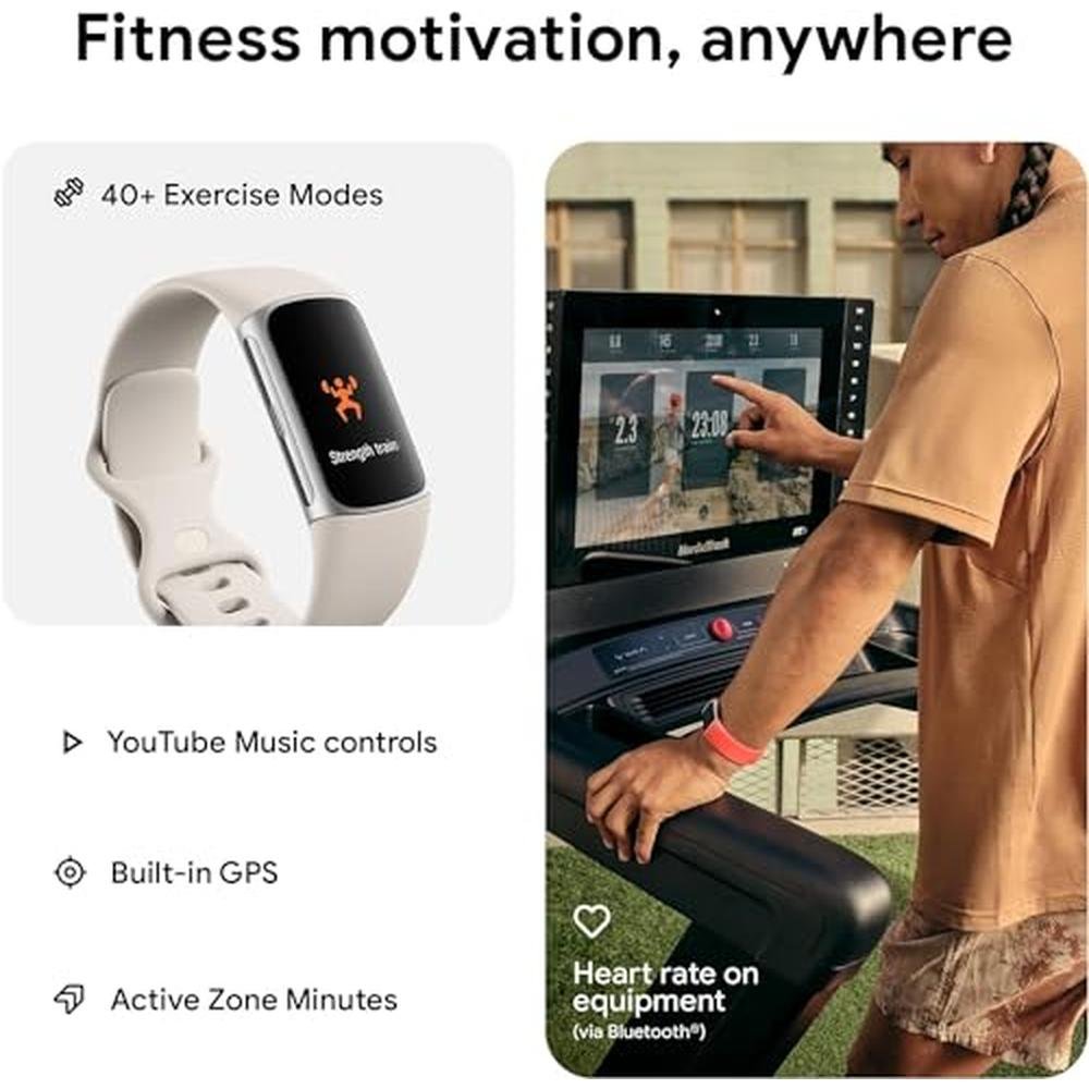 The Fitbit Charge 6 Fitness Tracker Smartwatch is designed to elevate your fitness journey with its advanced features and comprehensive health monitoring capabilities. Seamlessly connect to compatible gym equipment and view your real-time heart rate on the display, enhancing workout accuracy and providing immediate feedback. This integration supports select machines with Bluetooth Heart Rate Profile, expanding your exercise options. Fitbit Charge 6 is your ultimate fitness and health companion, combining advanced health monitoring with seamless connectivity. It offers precise heart rate tracking, and irregular heart rhythm notifications,. Stay connected with Google apps like Maps, Wallet, and YouTube Music, all accessible from a vibrant, customizable touchscreen. With 40+ exercise modes, built-in GPS, and Active Zone Minutes, you can tailor your workouts to your goals, while the Daily Readiness Score helps you optimize your routine. Track over 40 different exercise modes, including running, biking, yoga, and strength training, with live stats delivered directly to your wrist. Whether you're a casual exerciser or a dedicated athlete, the Charge 6 ensures precise tracking and insights for a variety of workouts. Its built-in GPS allows you to track pace and distance without needing your phone, making it perfect for outdoor runs and adventures. Water resistance up to 50 meters ensures reliability in various conditions, from swimming to rainy day workouts. The 7-day battery life and water resistance up to 50 meters make it perfect for any lifestyle, and features like Smart Wake, sleep mode, and on-wrist mindfulness sessions ensure you're always rested and ready to go..Bundle Items IncludeFitbit - Charge 6 Advanced Fitness & Health Tracker - PorcelainUSB Charging AdapterDiginerds Microfiber Cleaning Cloth