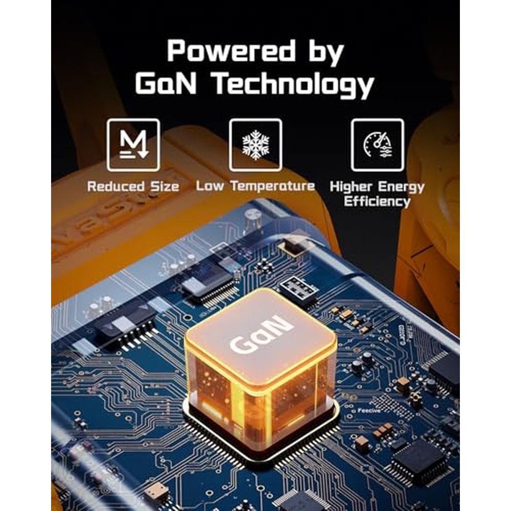 - Utilizes advanced GaN technology for high-efficiency charging and reduced heat generation