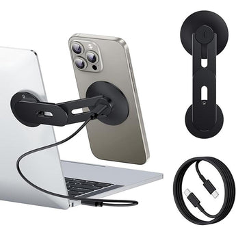 - Light and Compact Magnetic phone holder for Laptop is made of lightweight aluminum alloy material. It has a small volume that saving space and making it easy to carry anywhere. It is the perfect choice for travel, meetings, analysis, business trips and so on.