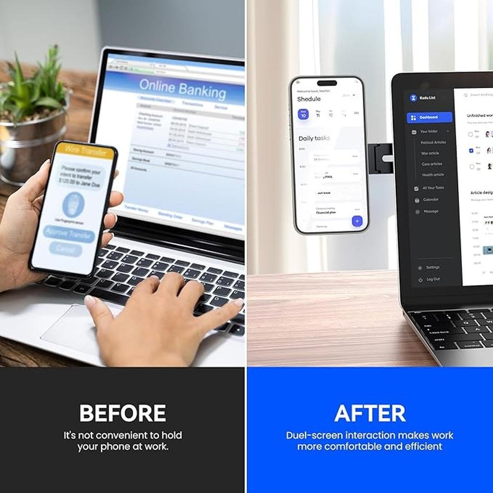 - Easy to Use Just tear the protective 3M tape off the mounting base, attach it to the back of the desktop, laptop monitor or computer monitor for Tesla. With our alignment card , you can easily attach the magnetic ring accurately to your phone. You can easily view text messages or answer calls at work, enjoy double screen interactive, improve office efficiency.
