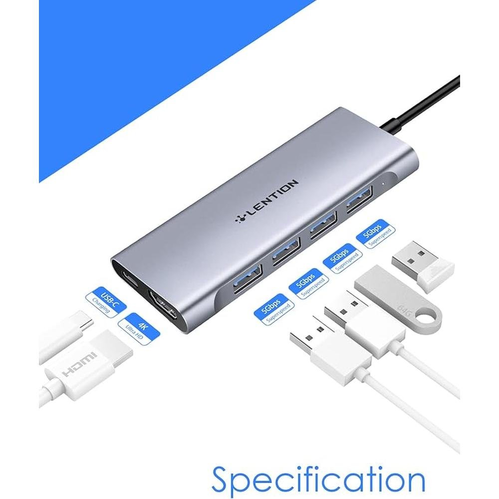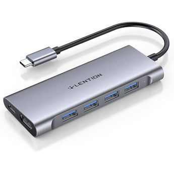 LENTION USB-C Multi-Port Hub with 4K HDMI Output, 100W PD, 4 USB 3.0 5Gbps Compatible 2024-2016 MacBook Pro, New Mac Air & Surface, Chromebook, iPhone 15, More, Stable Driver Adapter (C35, Space Gray)