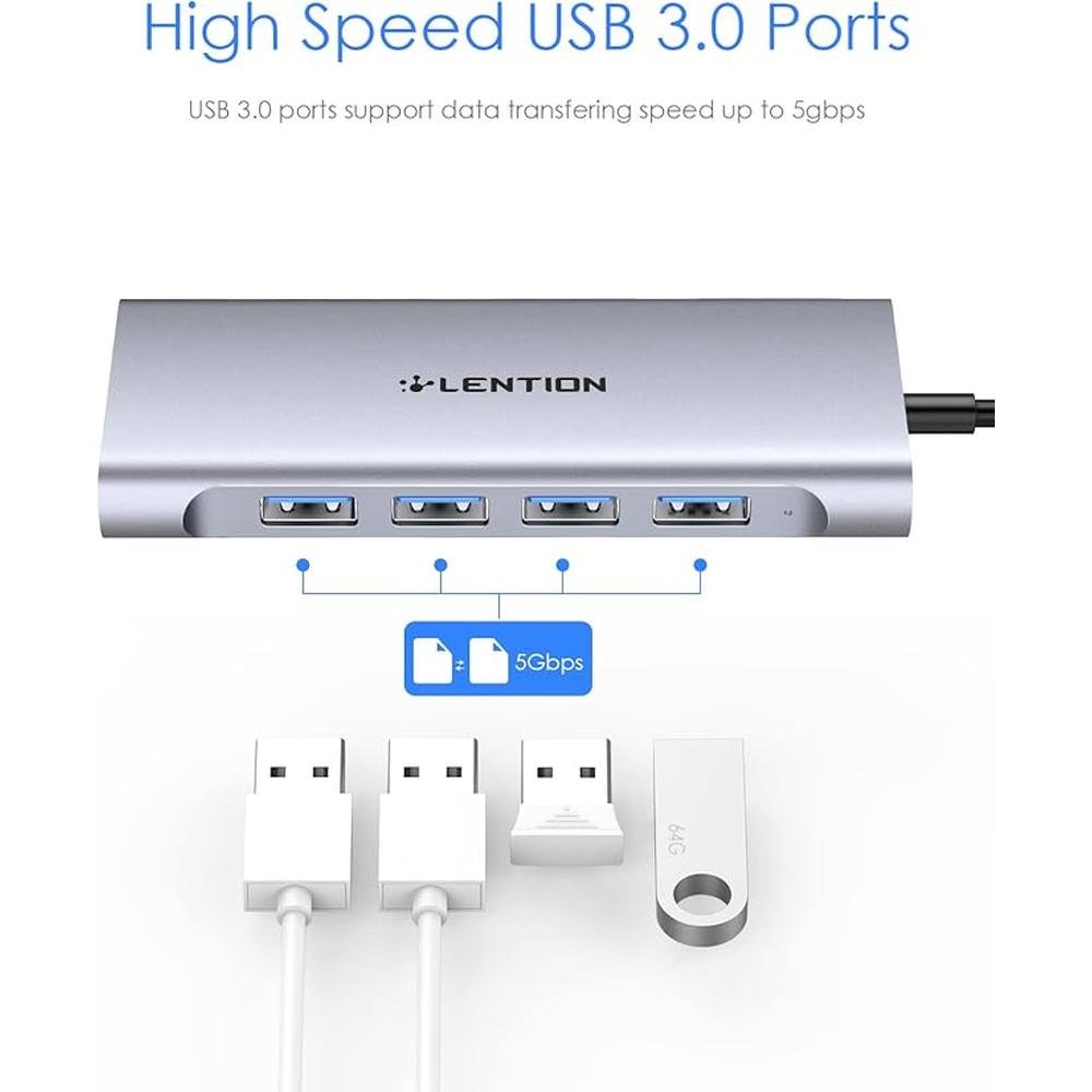 • Lention USB C Multiport Hub features multi-port functionality for convenient connectivity