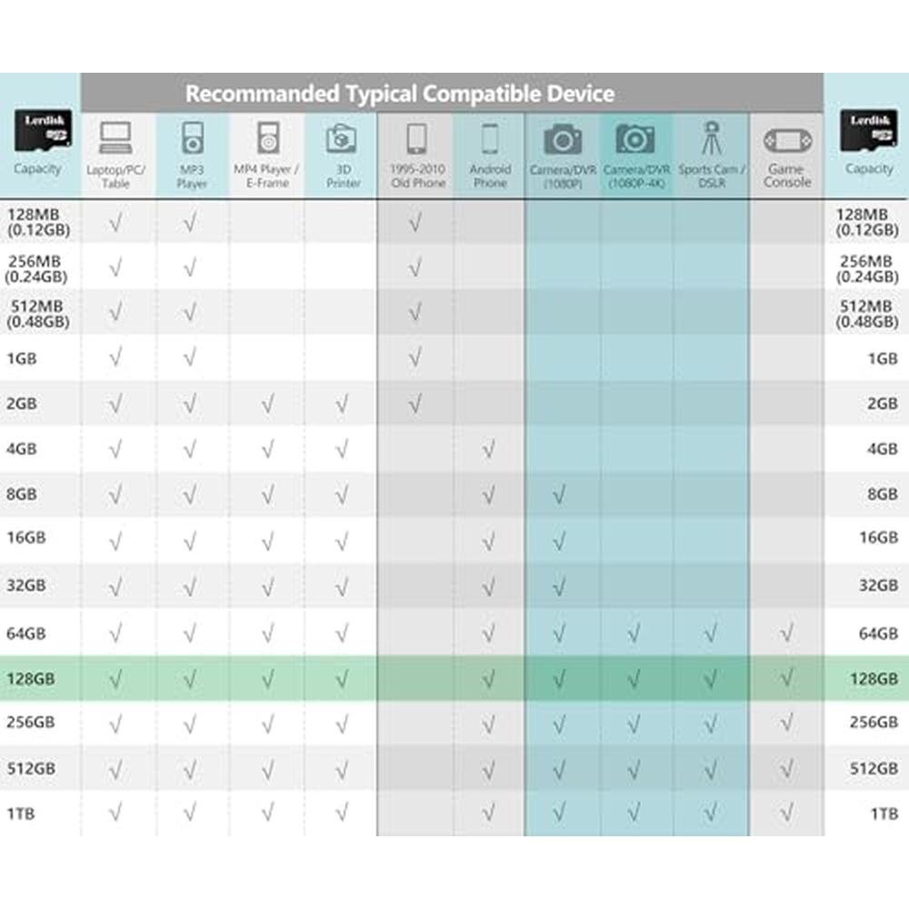 Featuresbr> A) Special for wholesalers, distributors or company use, the more you purchase, the lower unit price. B) Compatibility - Micro SD Card 128MB-512MB are special for small files and doc, txt files. Maybe too small to save any videos or use in phones. Capability1) Micro SD Card 1GB and 2GB 4GB are with Class 4 and Class 6 speed, suitable for old phones/android tablet pc/computers. 2) Micro SD Card 8GB 16GB are with Class 10 / U1 high speed, additionally support 1080P video recording, digital camera, newer tablet pc, newer cell phone and computer. 3) Micro SD Card 32GB 64GB 128GB 256GB 512GB 1TB are with U3 standard extremely high speed, additionally support 2K(1440P) and 4K(2160P) video recording, High speed camera, Switch, DVR etc.