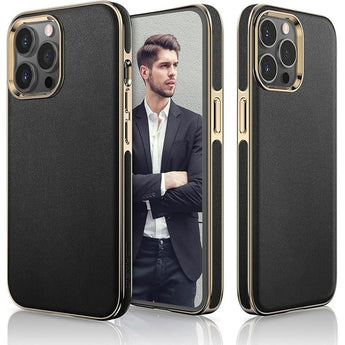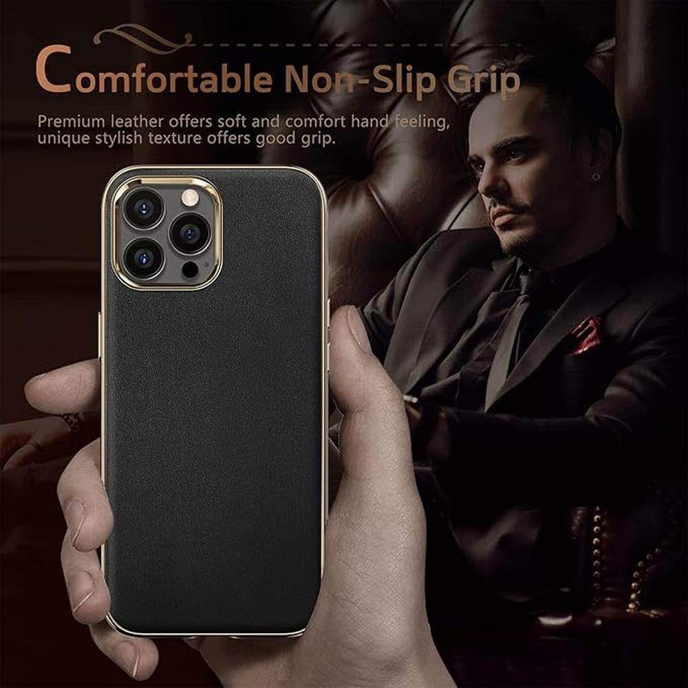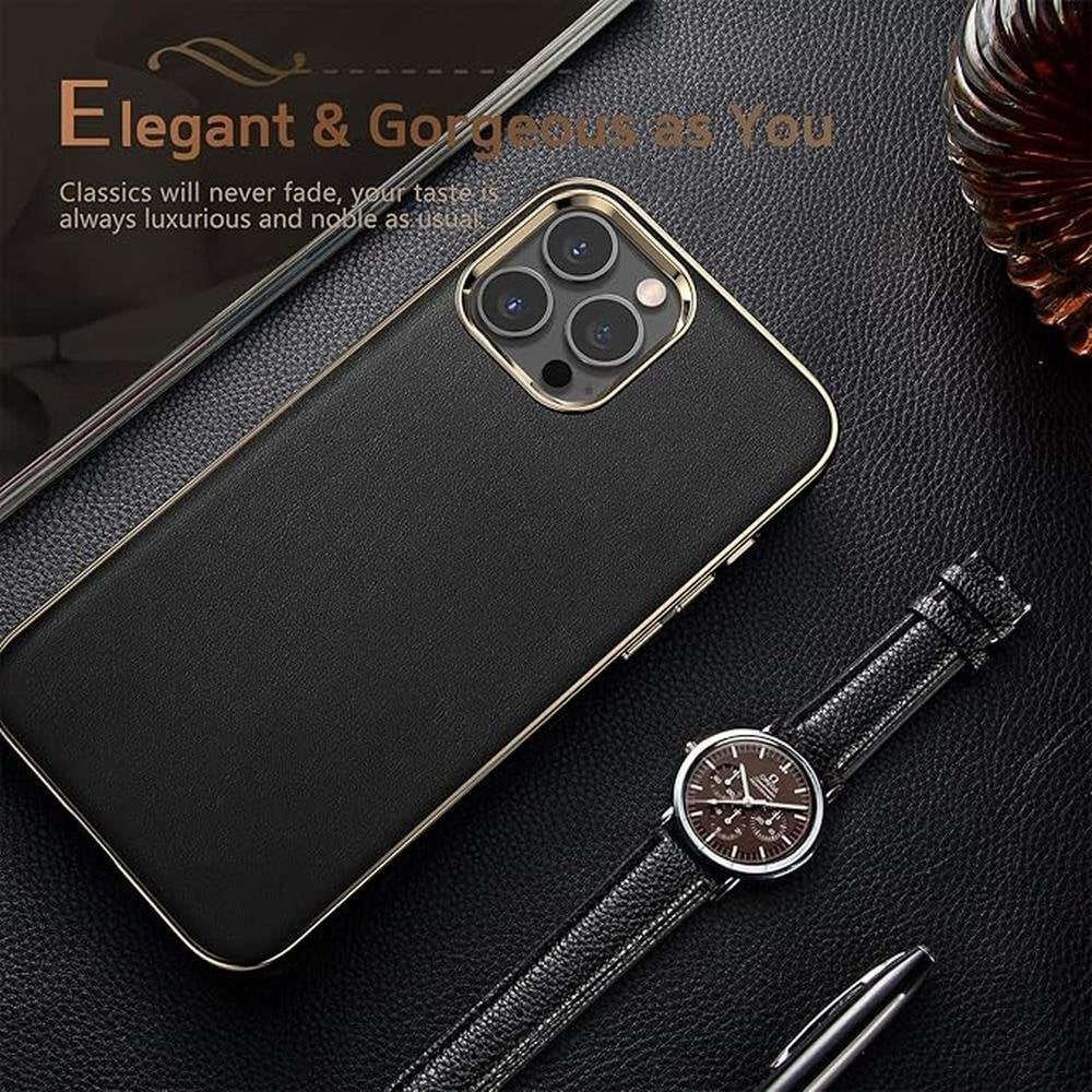 LOHASIC Compatible with iPhone 14 Pro Max Case, 2022 Classic Leather Back Cover with Soft Microfiber Lining Shockproof Men Phone Cases for iPhone 14 Pro Max 6.7 inch - Black Gold