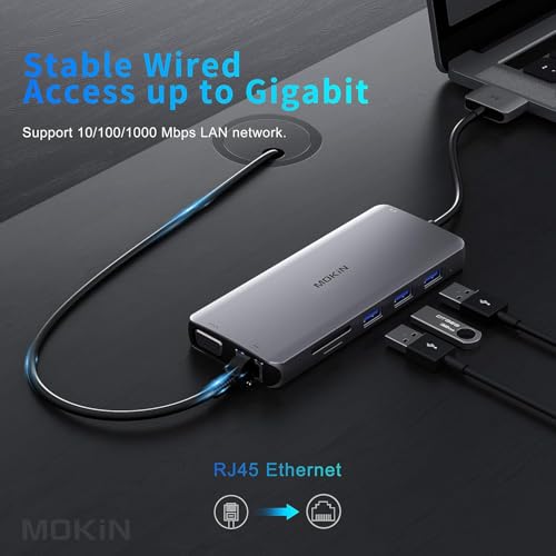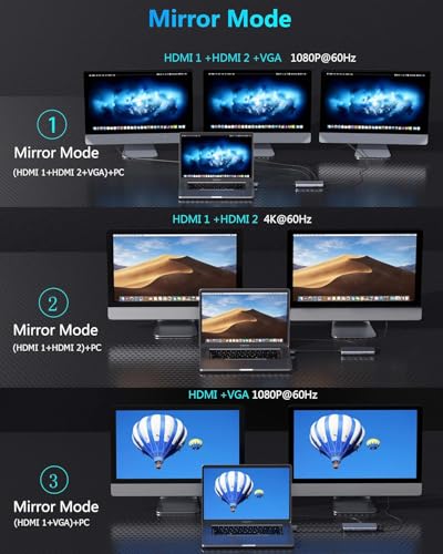 Experience the ultimate in productivity and versatility with our premium MacBook Pro Docking Station, designed to transform your MacBook Pro or Air into a dual-monitor powerhouse. As a top solution for a MacBook dual monitor setup, our 12-in-1 USB C adapter allows you to connect two external monitors via dual HDMI ports, while also providing access to VGA, Ethernet, AUX, and 4 USB ports. With the ability to support MacBook dual external monitors, you can effortlessly expand your workspace and boost your multitasking capabilities. Our docking station also features an SD/TF card slot and supports 100W PD, making it the perfect MacBook dual monitor dock for professionals. Designed for MacBook Pro Air 2018-2024, our docking station comes with an advanced chip, providing stable performance and expanding your work opportunities. No need for drivers or software, just plug and play, and convert your MacBook USB C port into 12 ports, including 2x4K 60Hz HDMI, VGA, gigabit Ethernet network, 4xUSB, SD/TF card reader, 100W PD, and 3.5mm audio adapter.