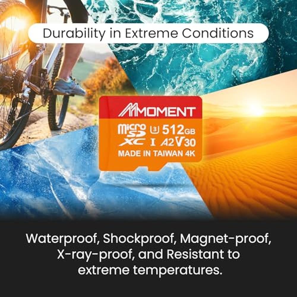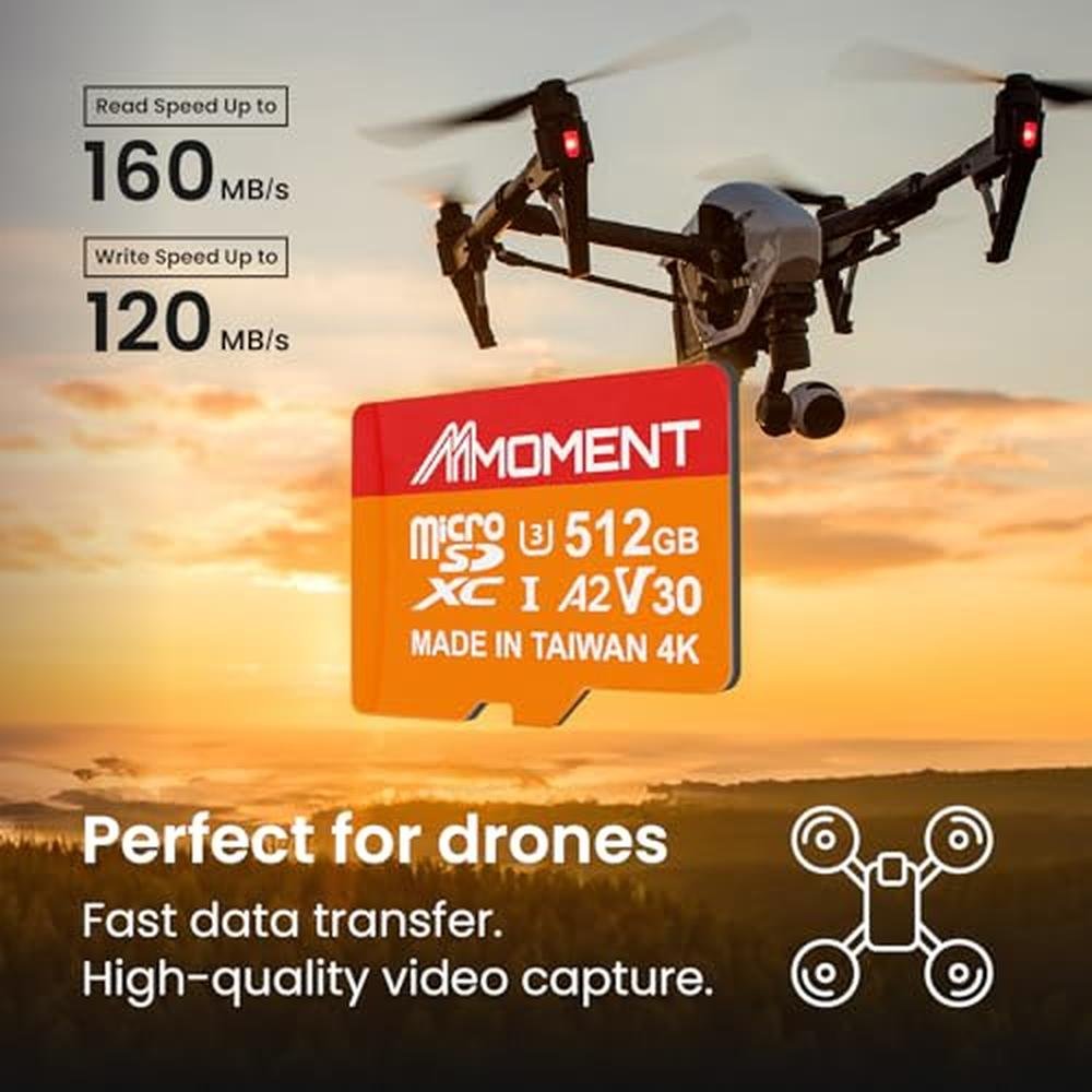 MMOMENT 512GB Micro SDXC Card MM23, A2, UHS-I, U3, V30, Class 10 Compatible, Read Speed Up to 160 MB/s,Write Speed Up to 120 MB/s, SD Adapter Included