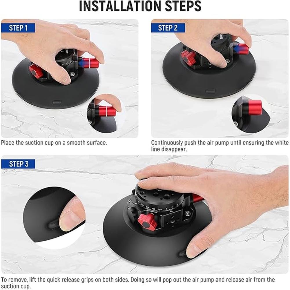 • Powerful Suction Cup with Magic Arm CA013 accessories kit has a pump activated vacuum suction cup to stick to most surfaces and rotate a mirrorless camera, action camera, and phone 360. Compatible with GoPro Hero 12 11 10 9 8 7 Black go pro Max Insta360 X4 X3 Go3 insta 360 Ace Pro DJI Osmo Action 4 3 2 Sony Canon Nikon DSLR, compatible with AKASO Brave 4 etc. A magical articulated arm with two swivel 14 ball heads mounts your device and provides flexible mounting positions