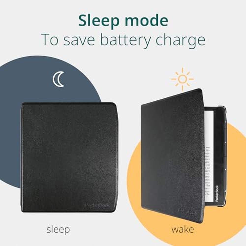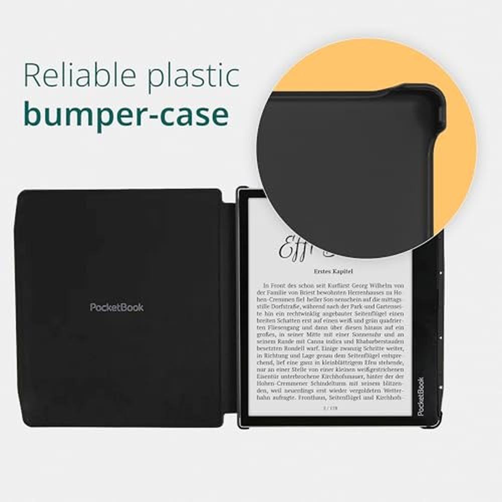KeeYour E-Reader Era Safe and Secure with the PocketBook E-Reader Cover Elevate your reading experience with the PocketBook E-Reader Cover designed specifically for the PocketBook Era. This protective case perfectly fits and complements your 7-inch e-reader, providing both style and functionality. Our E-Reader Cover features a smart sleefunction that intelligently puts your device to sleewhen the cover is closed, preserving your current page and maximizing battery life. When you open the case, your e-reader wakes uinstantly, allowing you to seamlessly continue reading where you left off. Safeguard your e-reader with confidence using our durable and protective case. Meticulously crafted, it offers comprehensive protection against scratches, bumps, and accidental drops, ensuring the long-lasting beauty and functionality of your device Experience the joy of effortless portability with our ultra-lightweight e-reader case. It provides optimal protection without adding any extra weight or bulk to your device, making it perfect for travel and on-the-go reading.