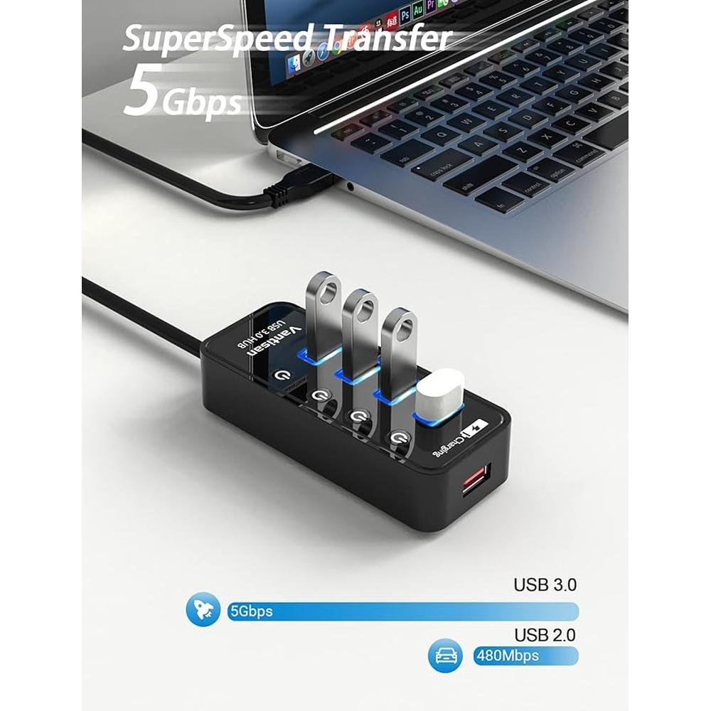 - Discover the cutting-edge features of our luxury powered hub, including individual on-off switches and a 5V 3A powered adapter, designed to make your digital life more convenient and efficient.