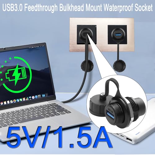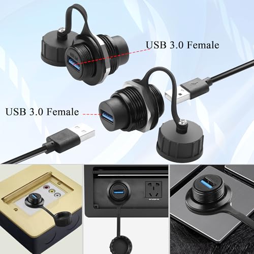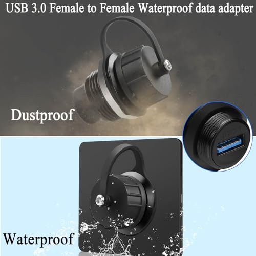 Experience reliable and high-speed data transfer with the QIANRENON USB3.0 Waterproof Data Connector, designed to provide a secure and waterproof connection for your devices. As a USB 3.0 female to female panel mount adapter, this waterproof socket ensures seamless data transfer and charging capabilities, with speeds of up to 5Gbps and a power output of 5V/1.5A. Ideal for applications where water or moisture may be present, this USB3.0 waterproof connector is perfect for outdoor or industrial use, providing a durable and long-lasting solution for your data transfer and charging needs. With its bulkhead mount design, this USB 3.0 compatible adapter is easy to install and provides a reliable connection, making it an excellent choice for various applications.