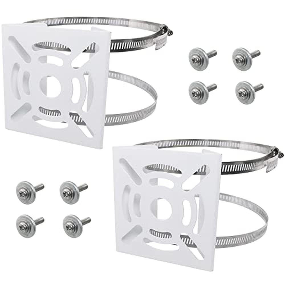 Ruiwaer 2 Sets Universal Vertical Pole Mount Adapter with 2 Loops(20cm Diameter) for CCTV Security Camera PTZ Dome, White