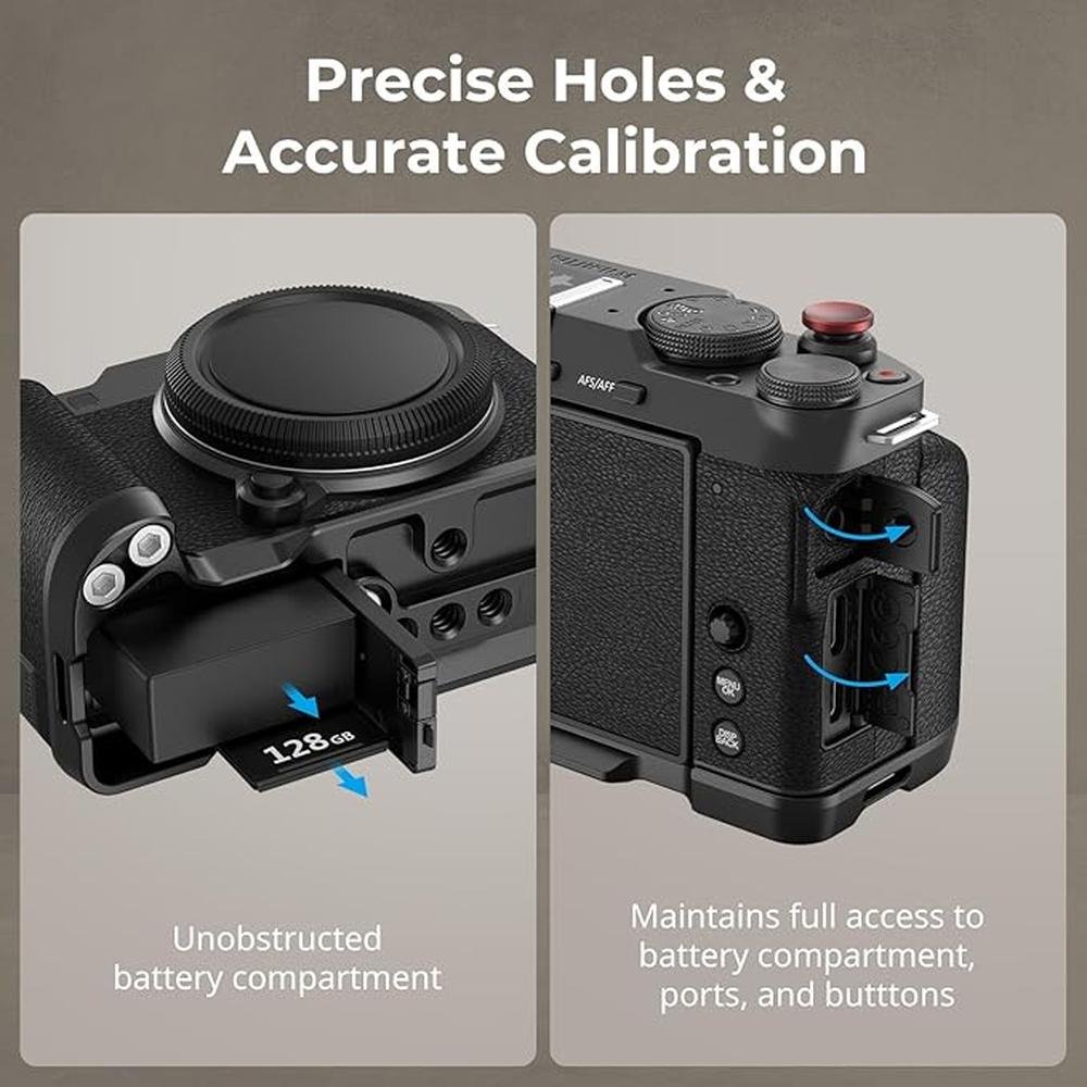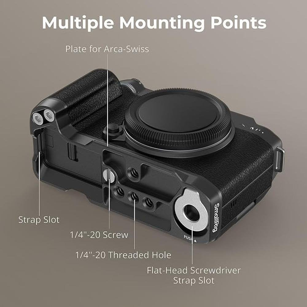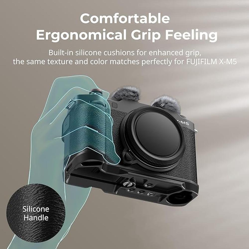 • Compatibility SmallRig L-Shape Mount Plate with Silicone Handle Sliver 4876 for FUJIFILM X-M5 is designed to improve the camera grip. The handgrip is fastened using a single 14-20 screw located at the bottom. It matches the texture and color scheme of the camera body, fitting seamlessly when mounted.