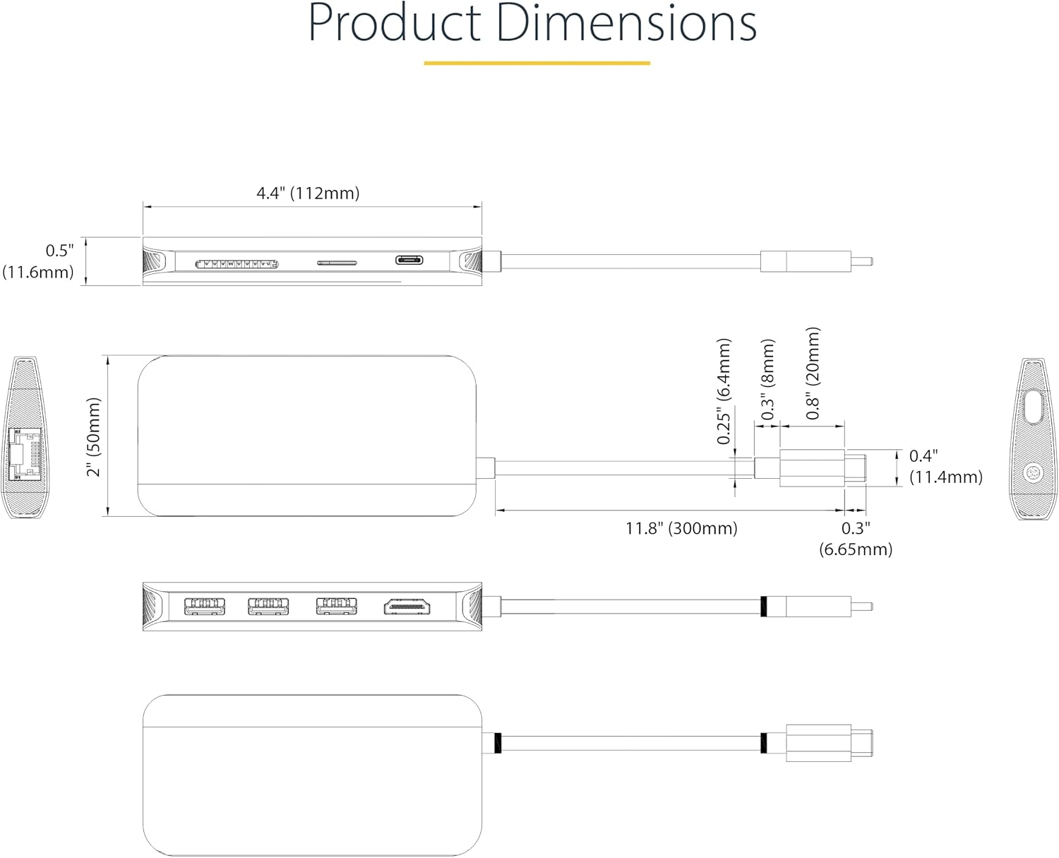 StarTech.com USB C Multiport Adapter 4K 60Hz HDMI Video, 3pt 5Gbps USB-A Hub, 100W USB PD Passthrough/GbE/SD/MicroSD/12 Cable, Laptop Docking Station, Alternative to DKT30CSDHPD (115B-USBC-MULTIPORT)