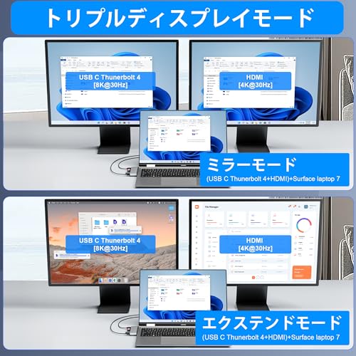 - Achieves triple-screen display with HDMI, USB-C Thunderbolt 4, and Surface Laptop 7, supporting connection to TV, projector, and more