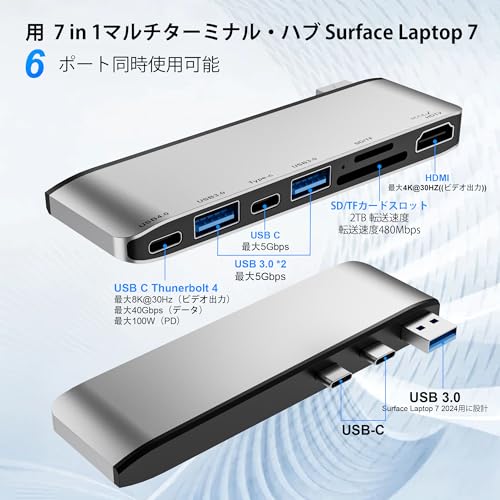 Surface Laptop 7 | Microsoft Surface Laptop 7 Adapter with 4K HDMI, USB-C Thunderbolt 4, 8K Display, 100W Charging | Premium Docking Station