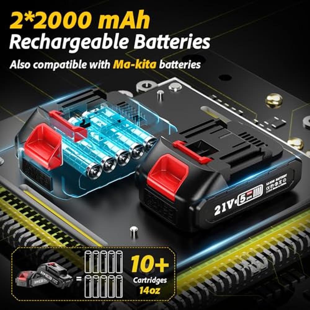 • Long-Lasting Power: Comes with two 21V 2000 mAh batteries, ensuring seamless operation; fully charged batteries can grease up to 10 tubes; a spare battery guarantees continuous operation, even in outdoor conditions; compatible with Makita batteries