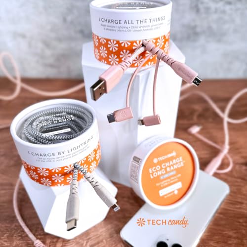 Experience the pinnacle of eco-friendly charging solutions with the Tech Candy Eco Charge USB Cable, boasting a sleek rose/pink design and a 3-tip universal charger that seamlessly supports USB-A to Lightning, Micro USB, and USB-C connections. Crafted from earth-friendly wheat straw, this 6-foot long cord is not only remarkably durable but also expertly woven for added flexibility and superior quality. As a trailblazer in premium cable technology, Tech Candy prioritizes both high-performance capabilities and sustainability, rendering this cable an exemplary choice for those seeking a reliable and environmentally responsible charging option. Whether you're a discerning cable technician or simply a tech-savvy individual, you'll appreciate the unparalleled versatility and convenience of this innovative cable, perfect for keeping your devices consistently charged and ready for use.